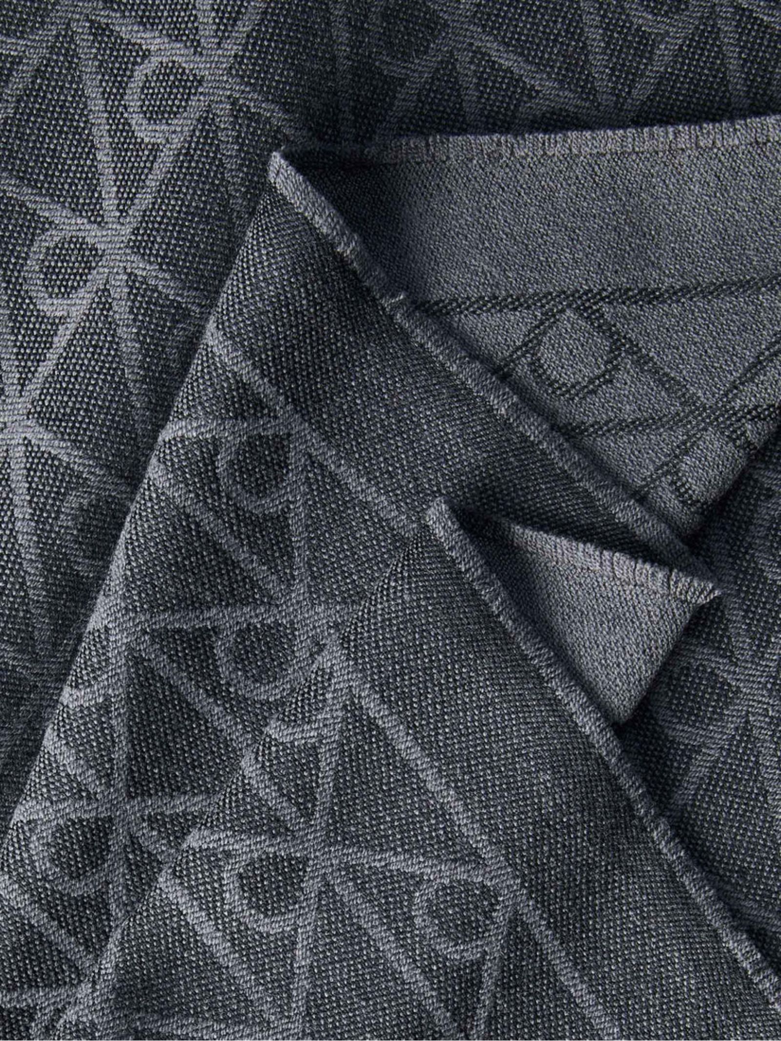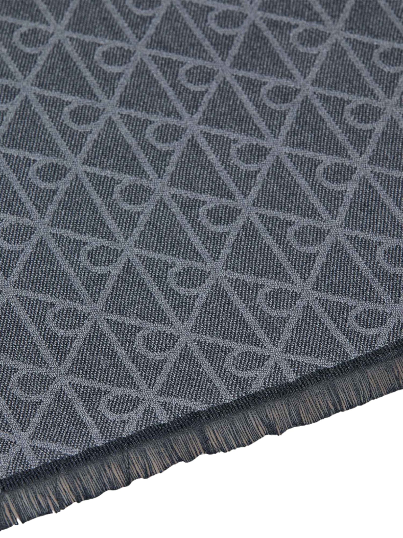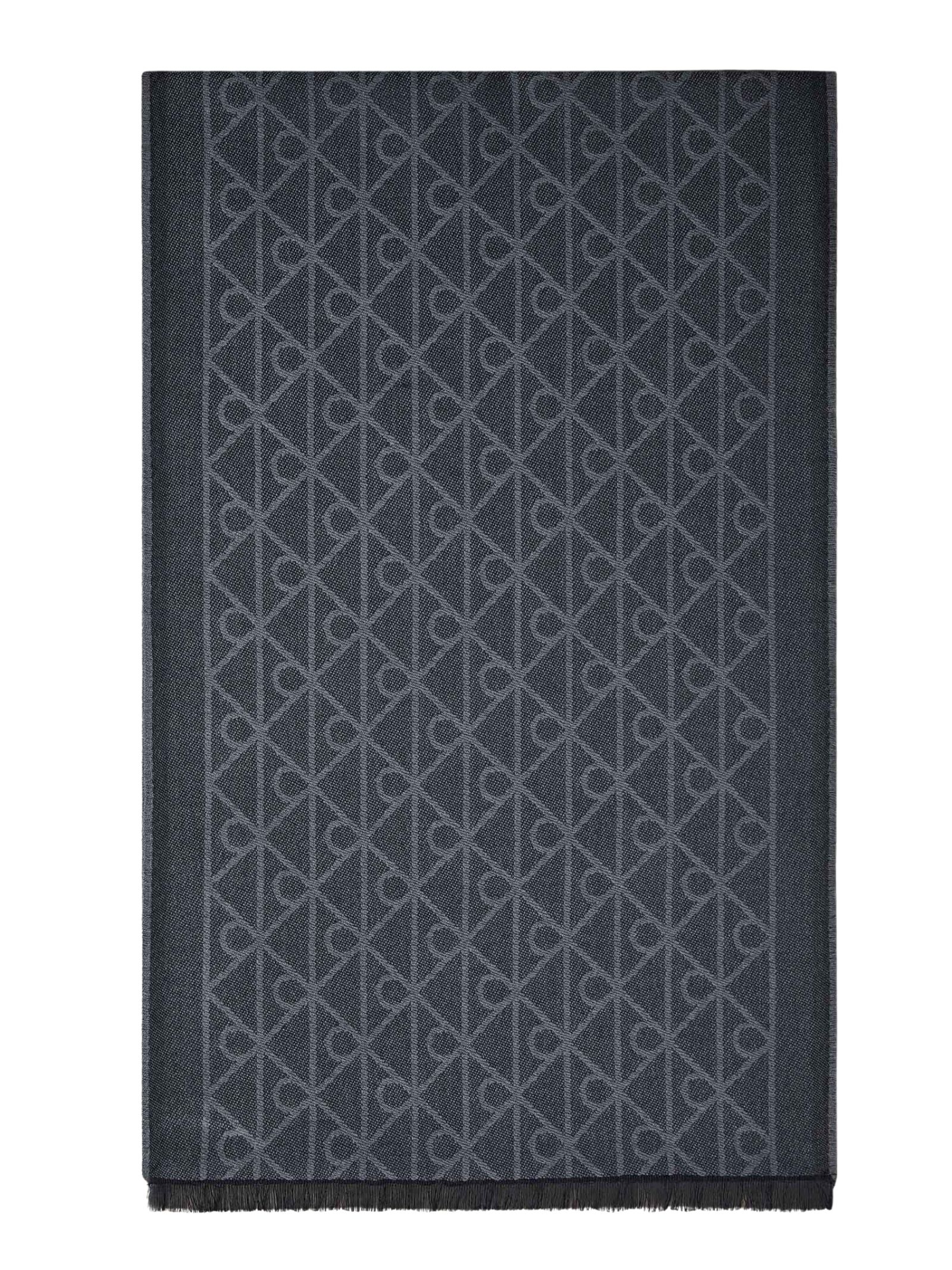 Sciarpa nera e grigia Calvin Klein di peso medio in maglia fine con orli sfrangiati; dimensioni 35x175 cm, composta da 70% lana e 30% poliestere.