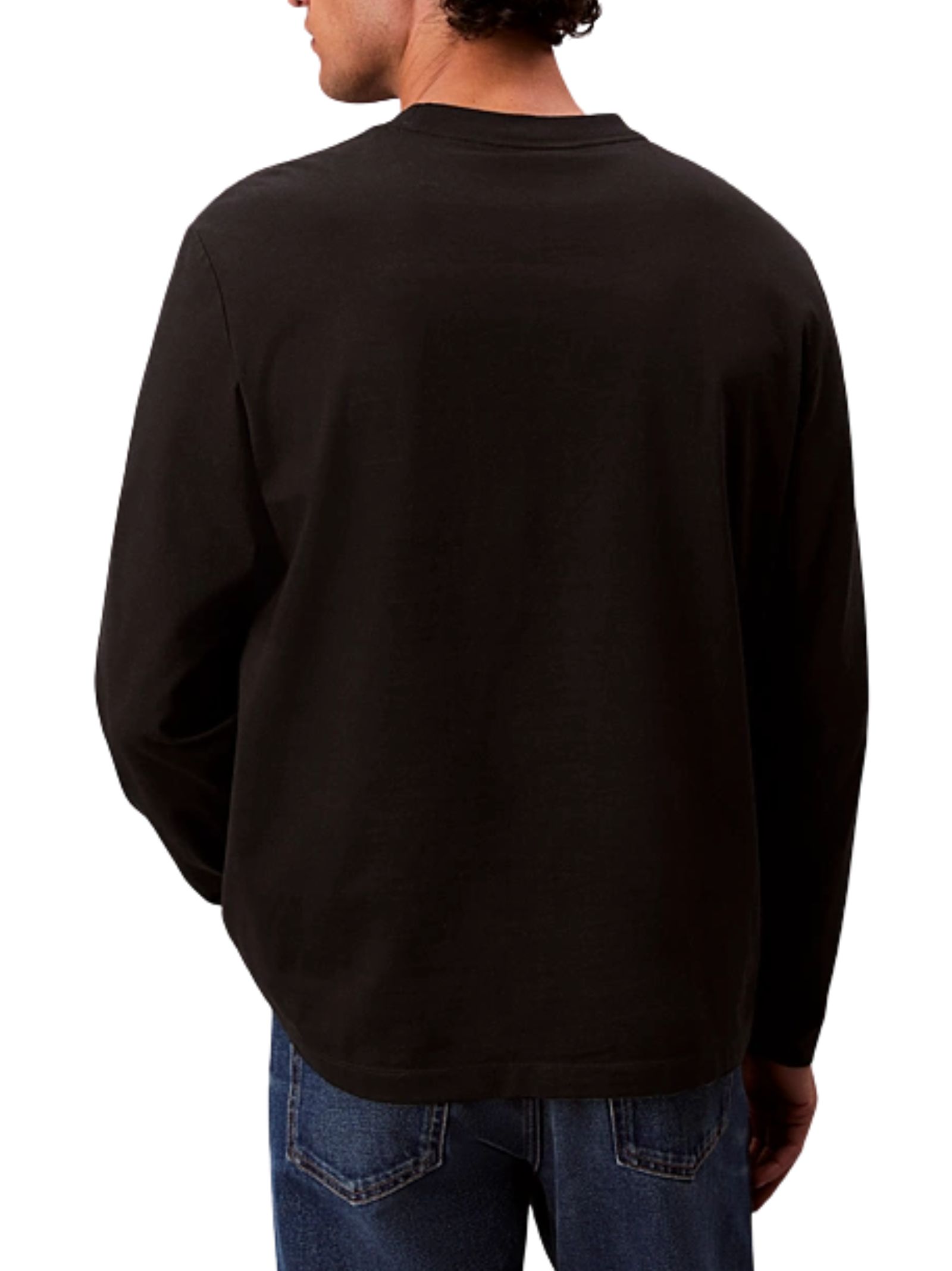 T-shirt girocollo in jersey di cotone con maniche lunghe e scritta logo Calvin Klein sul petto, caratterizzata da taglio rilassato per un comfort quotidiano e uno stile casual essenziale. Composizione: 100% cotone.