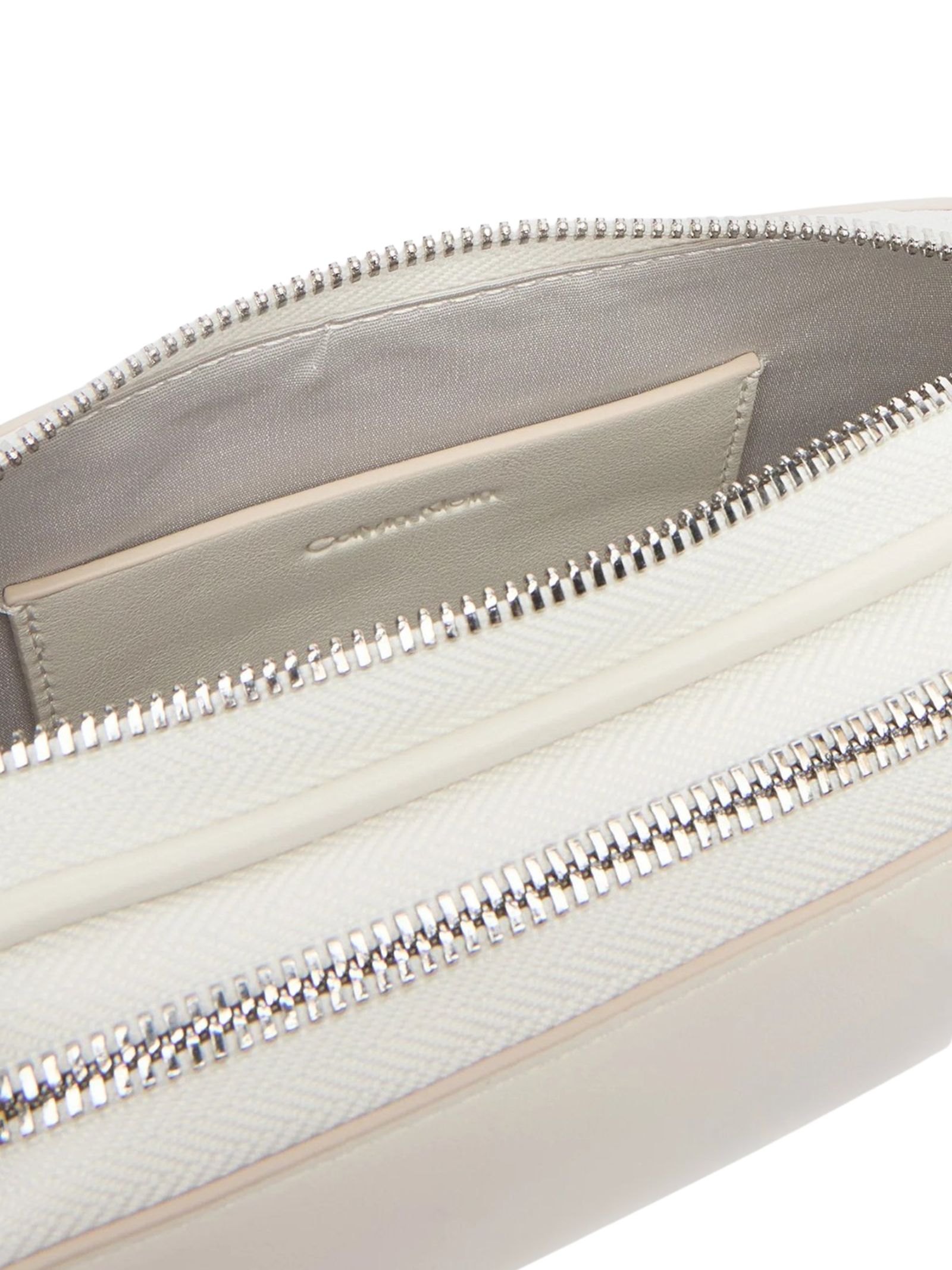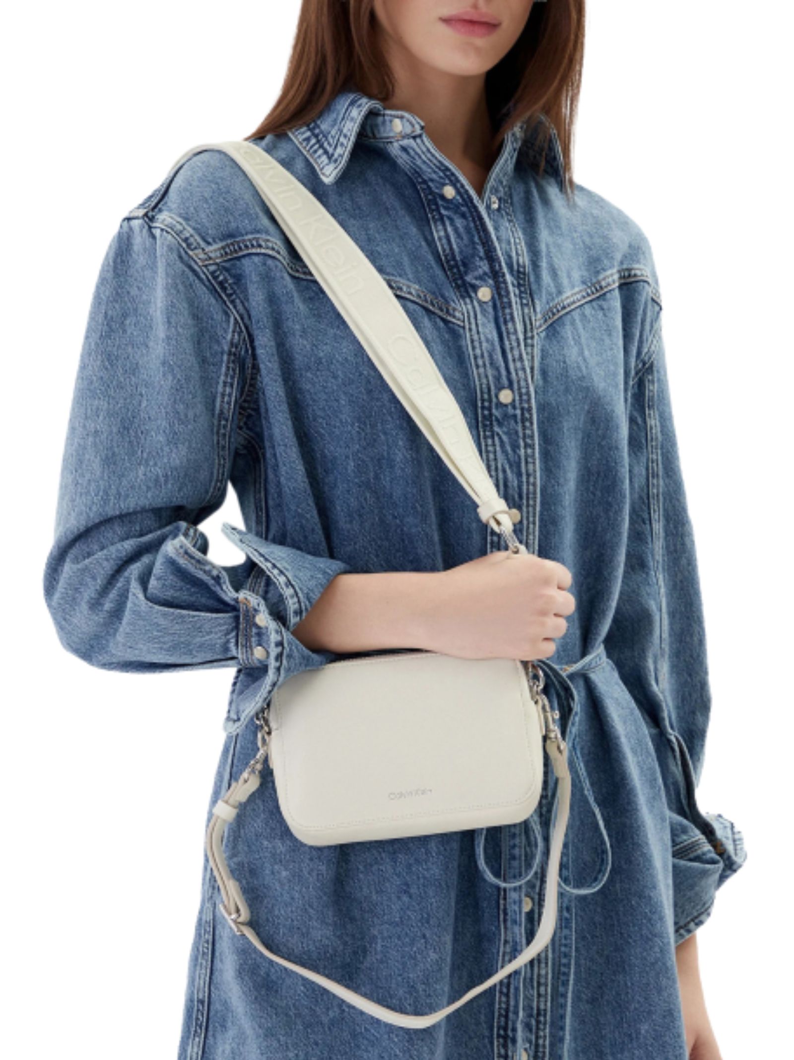 Piccola borsa a mano Calvin Klein in pelle sintetica con chiusura a zip. Due compartimenti interni e scomparto per carte. Dotata di due tracolle staccabili e regolabili. Non compatibile con formato A4. Dimensioni: altezza 12 cm, larghezza alla base 17,5 cm, profondità 5 cm. Lunghezza tracolla minima: 85/54 cm, massima: 138/63 cm. Un accessorio compatto e versatile.