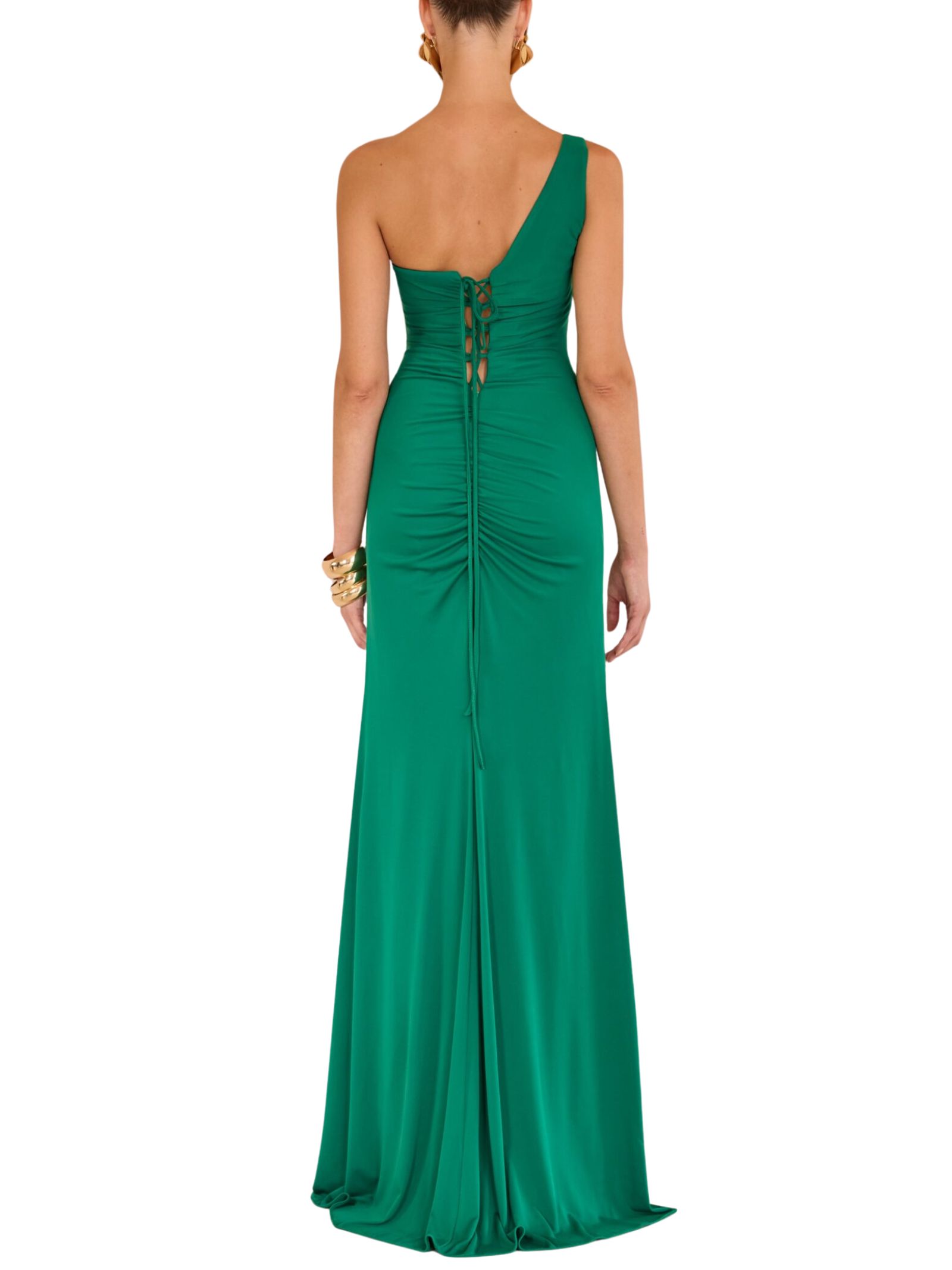 Abito asimmetrico in tessuto leggero e fluido, linea aderente al corpo con spacco laterale, perfetto per valorizzare la figura. Ideale per cerimonie o eventi eleganti. Composizione: 94% poliestere, 6% elastan.