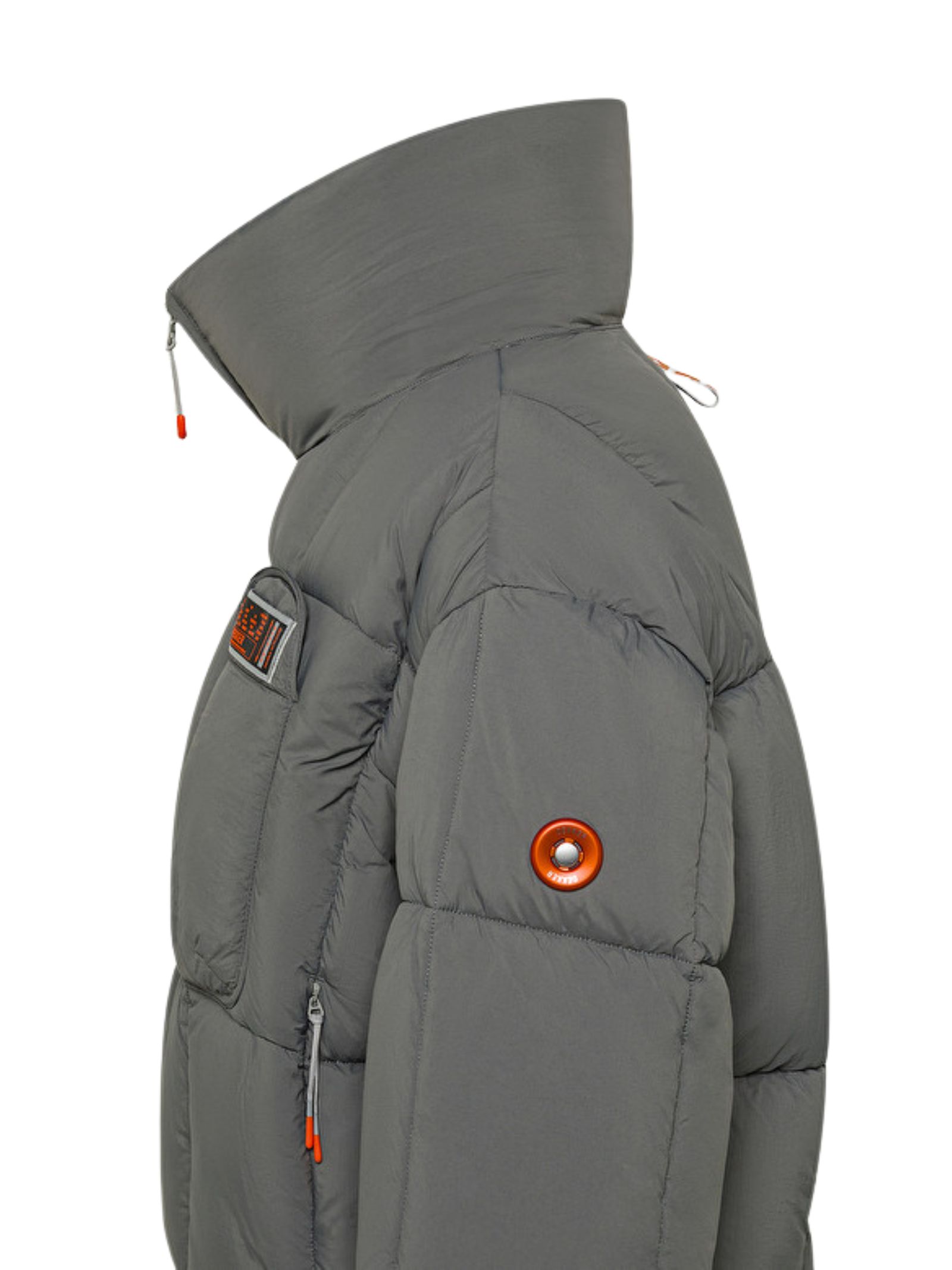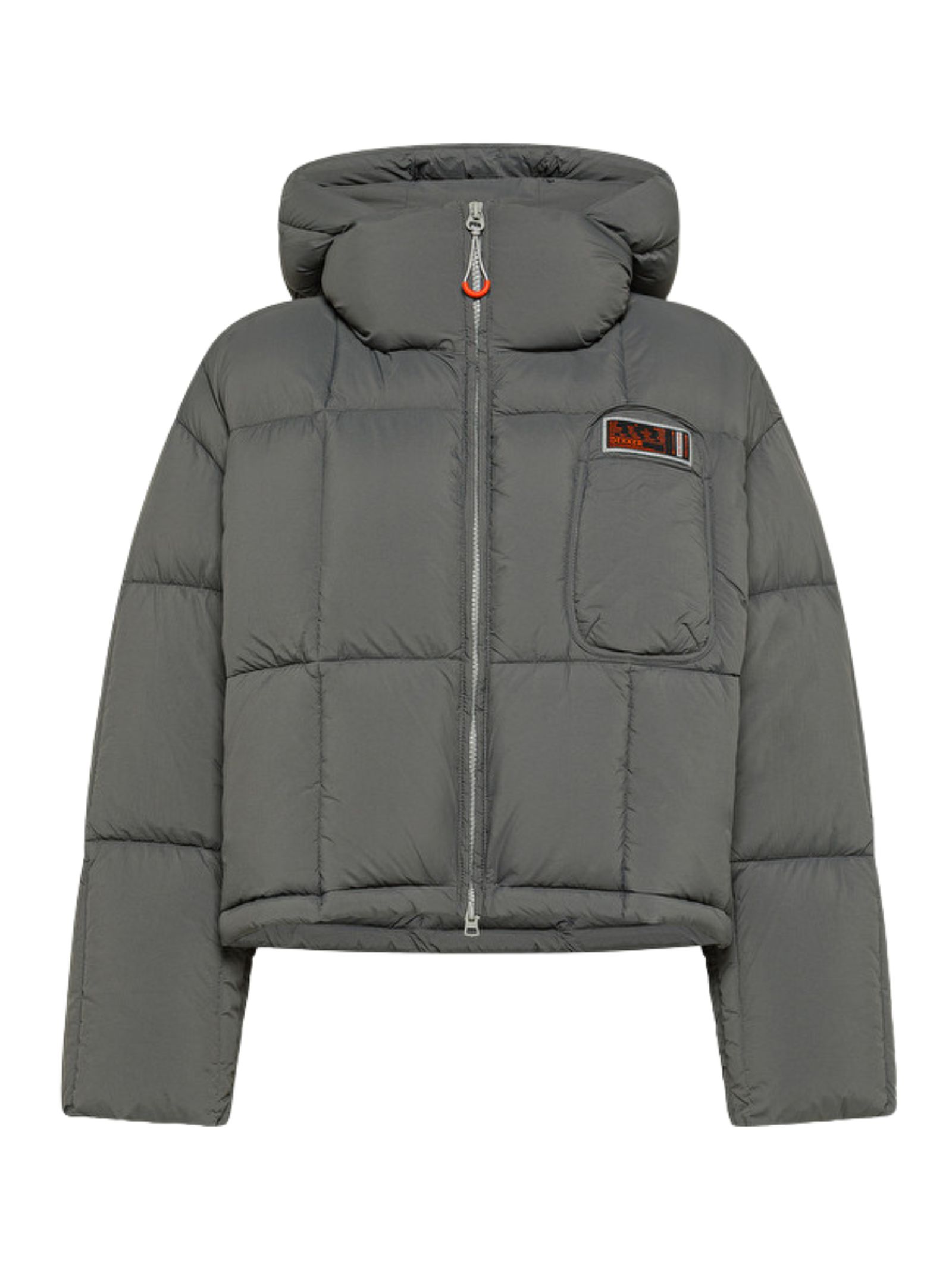 Piumino Dekker corto, caratterizzato da maxi trapunte che ne esaltano il look urbano. Realizzato in nylon superleggero con finitura semi-opaca e trattamento water repellent, garantisce comfort e protezione grazie allimbottitura. Presenta cappuccio interno staccabile con coulisse, collo in piedi, zip centrale e tasche laterali con tira-zip arancione a contrasto. Patch sul petto, oblò metallico sul braccio e nastro con logodietro al cappuccio completano un design funzionale e distintivo. Vestibilità regular. Realizzato in 100% poliammide con imbottitura 100% poliestere.