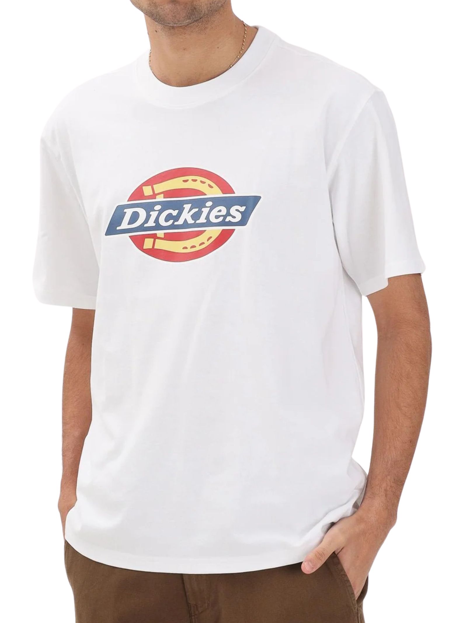 T-shirt Dickies Icon a manica corta in cotone di peso medio, morbida, traspirante e confortevole, ideale da indossare tutto l'anno e facile da abbinare grazie al design essenziale; vestibilità comoda, perfetta per la stagione primavera/estate. Composizione: 100% cotone.