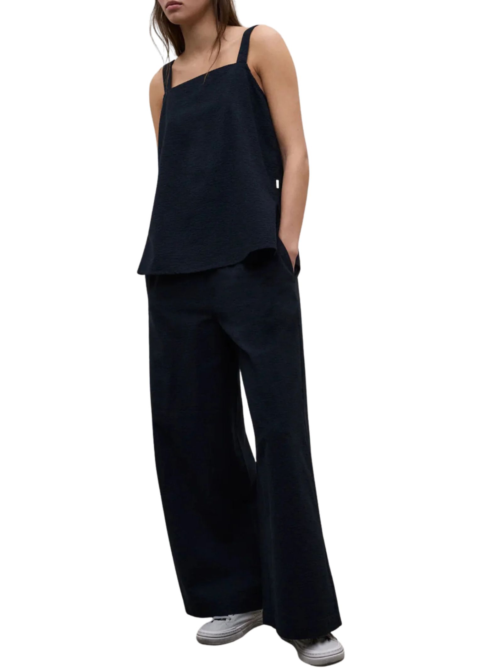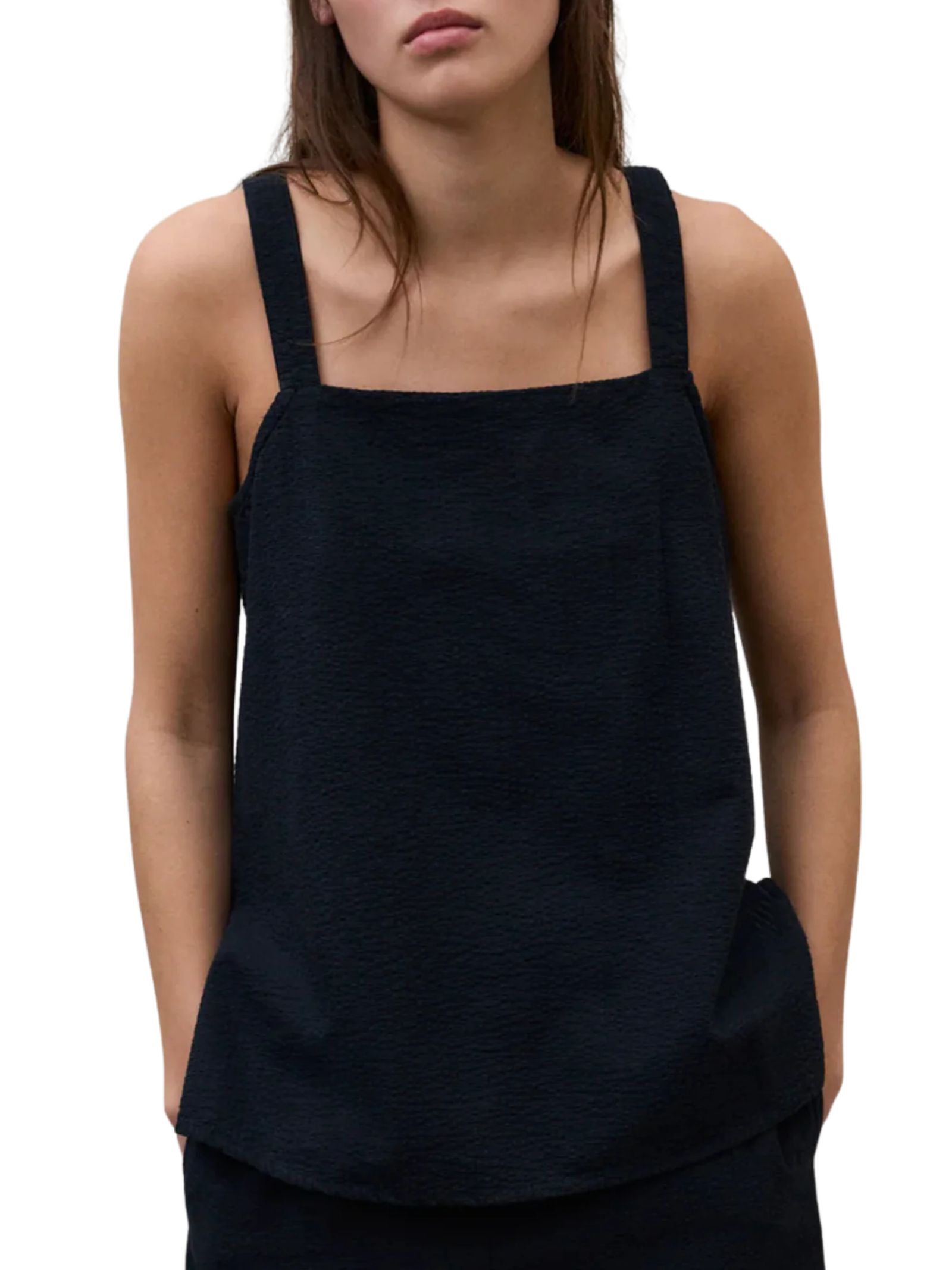 Il top Aria è realizzato con il 70% di cotone biologico e presenta una vestibilità regolare, pensato per offrire comfort e naturalezza. Il design è valorizzato da uno scollo quadrato, schiena elasticizzata e spacchi laterali, per una silhouette femminile e moderna. Composizione: tessuto principale: 70% cotone biologico, 30% cotone riciclato. L'utilizzo di cotone biologico riduce l'impiego di pesticidi, fertilizzanti chimici e OGM, contribuendo alla tutela dell'ambiente e della biodiversità. Il cotone riciclato, invece, permette di risparmiare acqua ed energia, ridurre le emissioni di CO2 e dare nuova vita agli scarti tessili, limitando l'uso di risorse naturali e l'impatto sull'ecosistema.