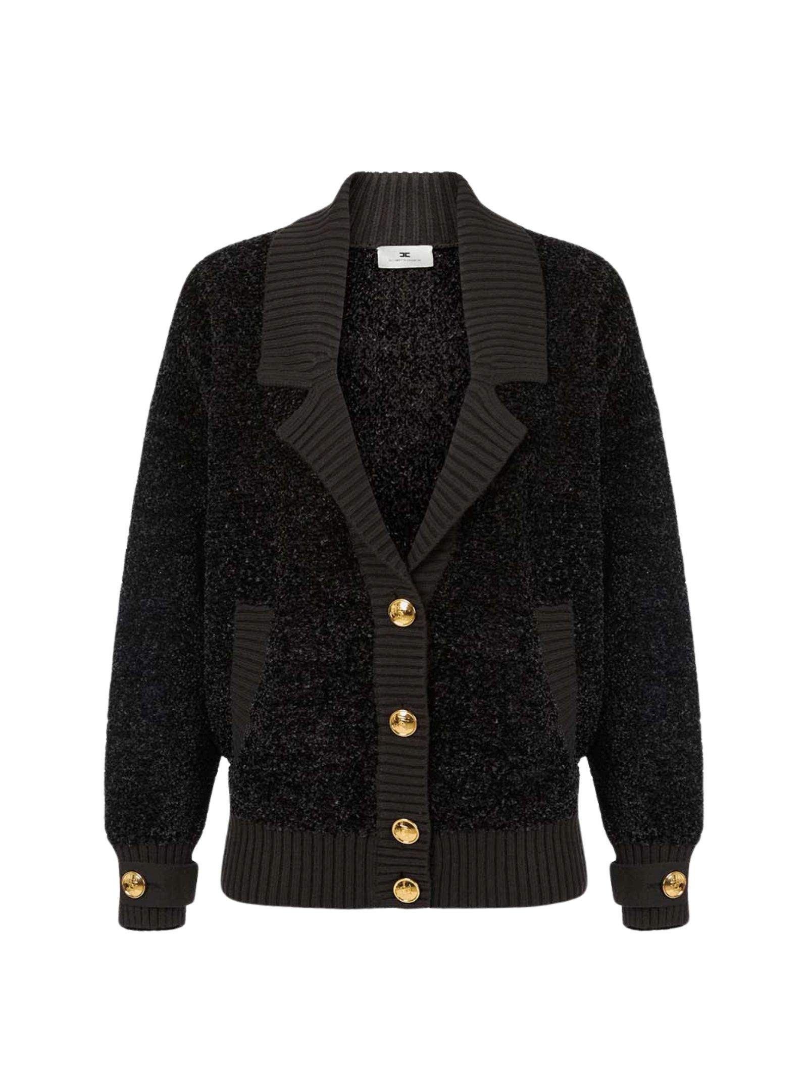 Cardigan Elisabetta Franchi in ciniglia bouclé dalla vestibilità over. Rifinito a coste, si distingue per la texture morbida e avvolgente. I bottoni in metallo dorato con logo illuminano il capo e donano un ultimo tocco raffinato. Composizione articolo 57%Poliestere 24%Cotone 16%Acrilico 03%Poliammide.