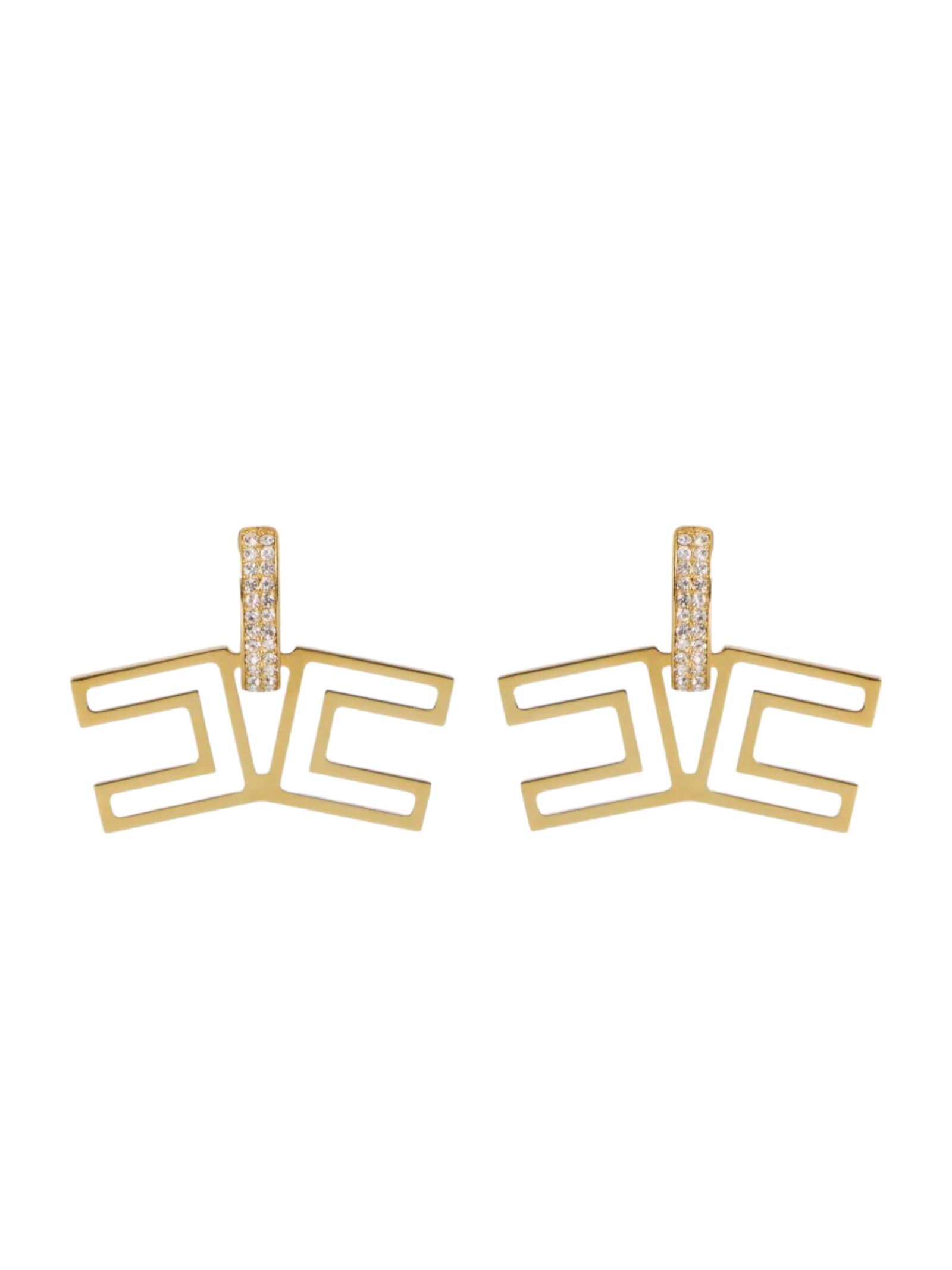 Orecchini con pavé di strass in metallo dorato dal design elegante impreziosito da un pavé di strass, che cattura la luce creando un effetto brillante e sofisticato, perfetto sia per occasioni speciali che per aggiungere un tocco luminoso a outfit quotidiani. Il logo discreto conferisce un dettaglio distintivo e contemporaneo e la combinazione tra metallo dorato e strass bilancia perfettamente glamour e versatilità; realizzati in ottone con inserti in vetro, garantiscono durata e brillantezza nel tempo, mantenendo un'estetica elegante e femminile. Un accessorio prezioso che illumina il viso con stile e raffinatezza.