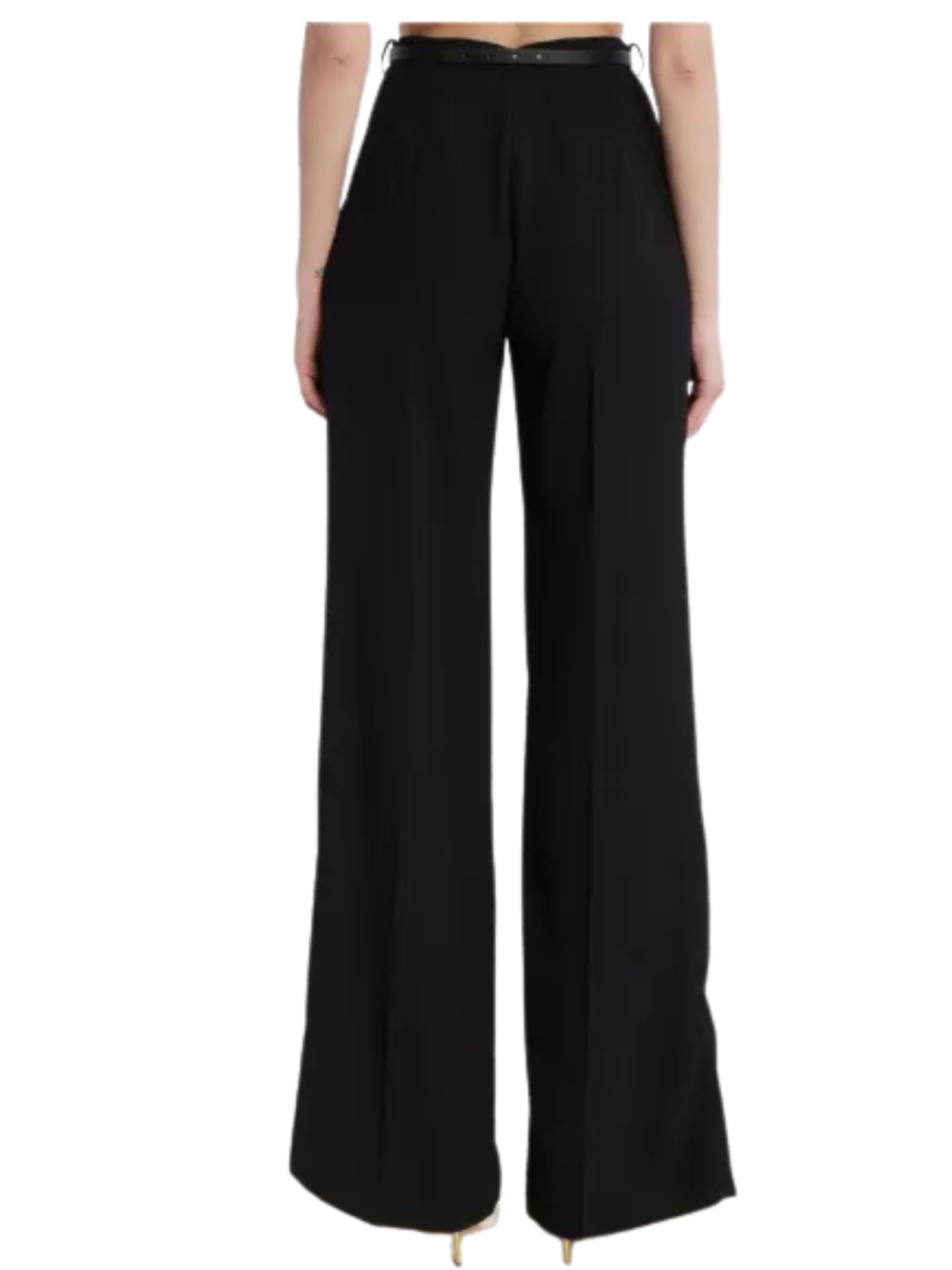 Pantaloni neri Elisabetta Franchi dalla vestibilità loose fit, caratterizzati da linea fluida e contemporanea. Composizione: 100% poliestere.