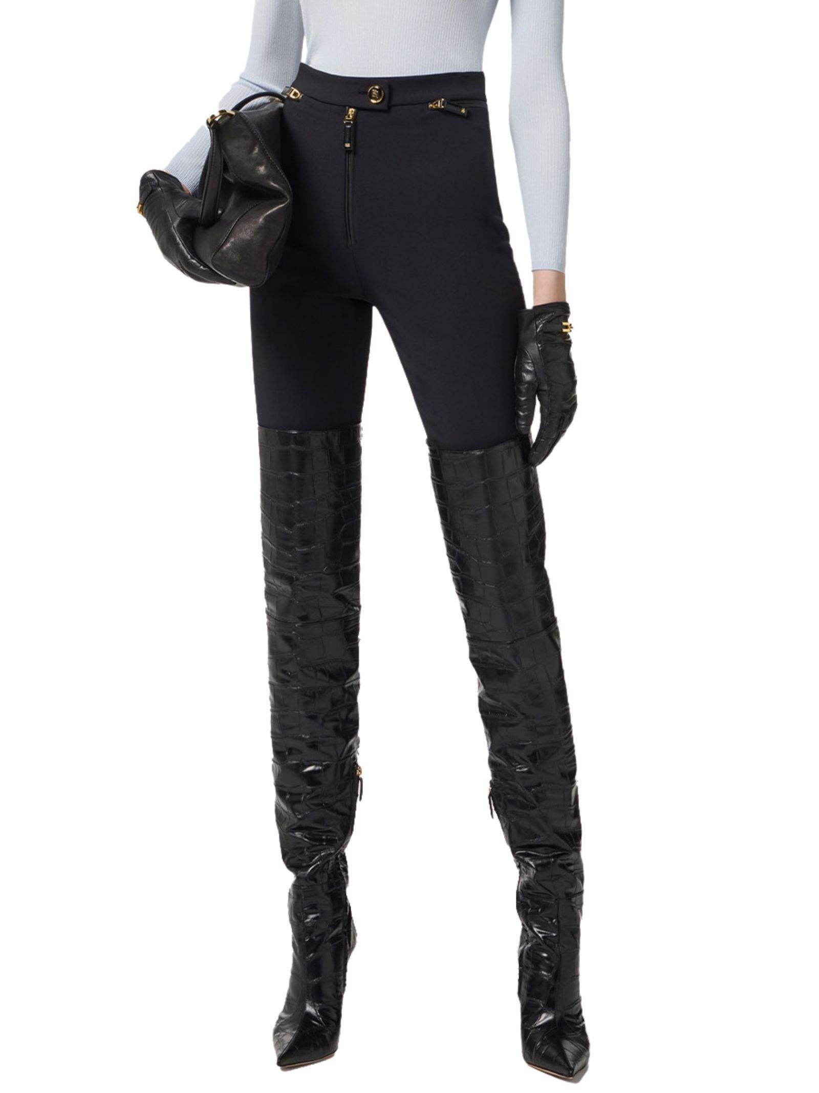 Modello aderente, con cerniere e chiusura con bottone logato. Dettagi dorati. 96% poliestere, 4% elastane.