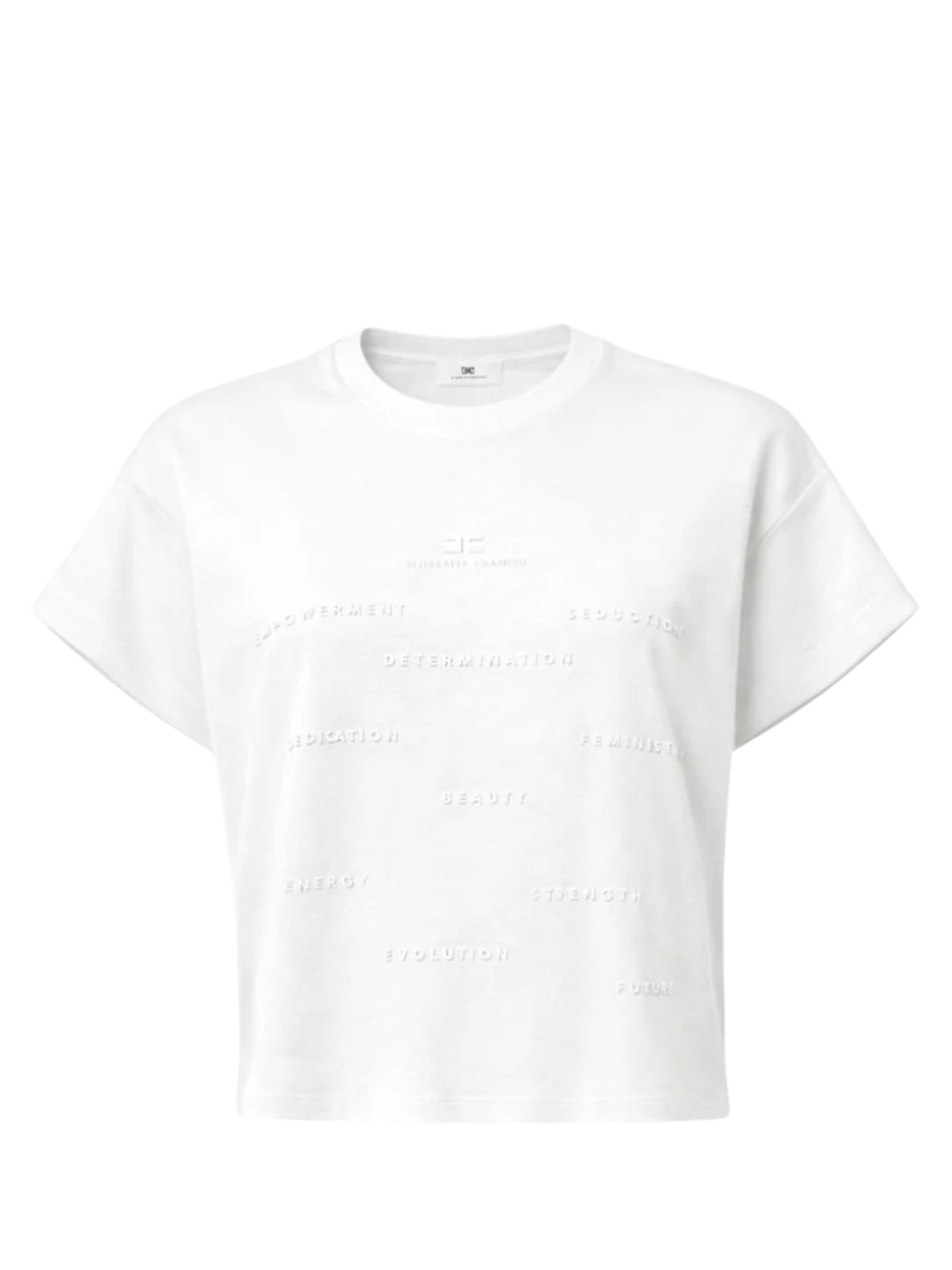 T-shirt girocollo a maniche corte ad aletta, realizzata in morbido tessuto strutturato dalla vestibilità regular; design essenziale valorizzato da logo e lettering frontali stampati in gomma a rilievo, tono su tono, con effetto 3D, dal raffinato dettaglio tattile. Composizione: 87%CO13%PL-INSERT:95%CO05%EA.