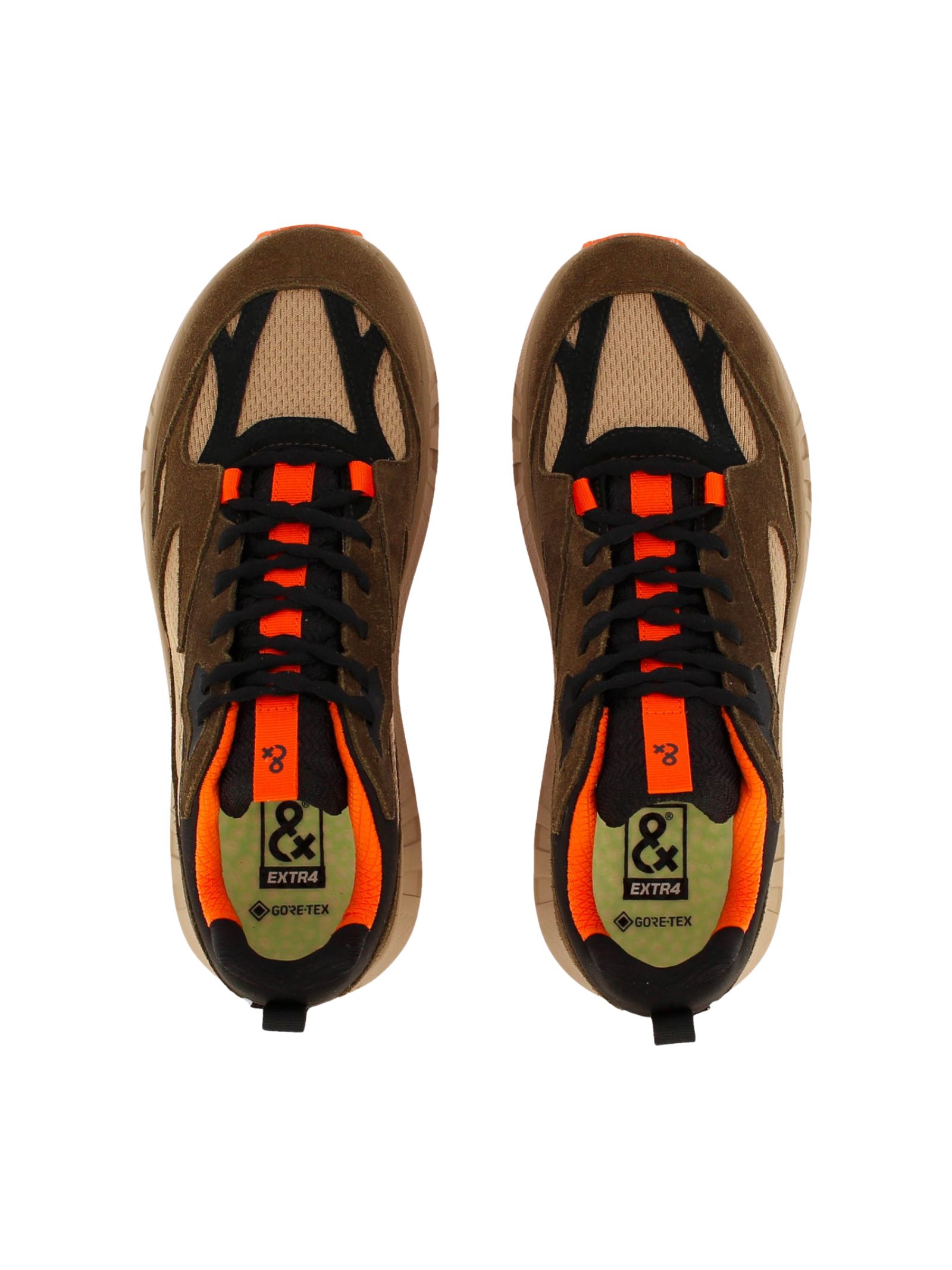 Sneakers Extr4 con tomaia in Pelle e Tessuto Tecnico Strutturato, membrana GORE-TEX integrata nella tomaia che garantisce resistenza allo stress dinamico e offre protezione impermeabile e traspirante. Collarino Imbottito in Tessuto Antisfilamento. Comfort elevato e migliore tenuta sul tallone durante le attività dinamiche. Sottopiede Rapid-Tech: Ammortizzazione avanzata grazie a microsfere in EVA e schiuma poliuretanica, per un comfort ottimale. Suola VIBRAM : In EVA e gomma naturale con denti multidirezionali 'traction lug' dal design autopulente. Per un'ottima aderenza e trazione su ogni suolo. Ideali per chi ama lescursionismo leggero, lurban trekking o semplicemente le scarpe versatili ad alte prestazioni.