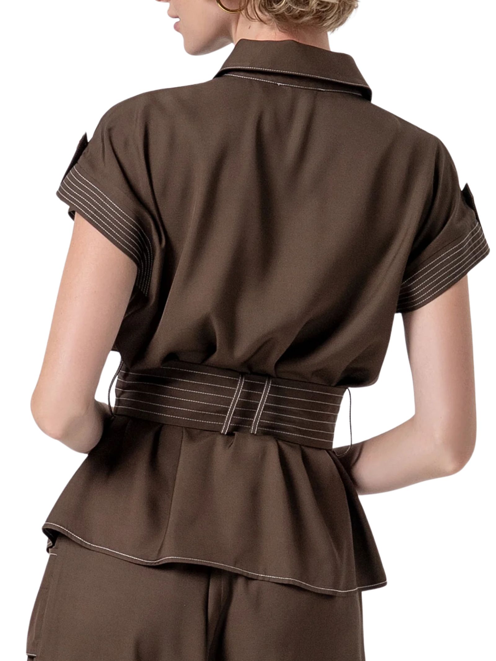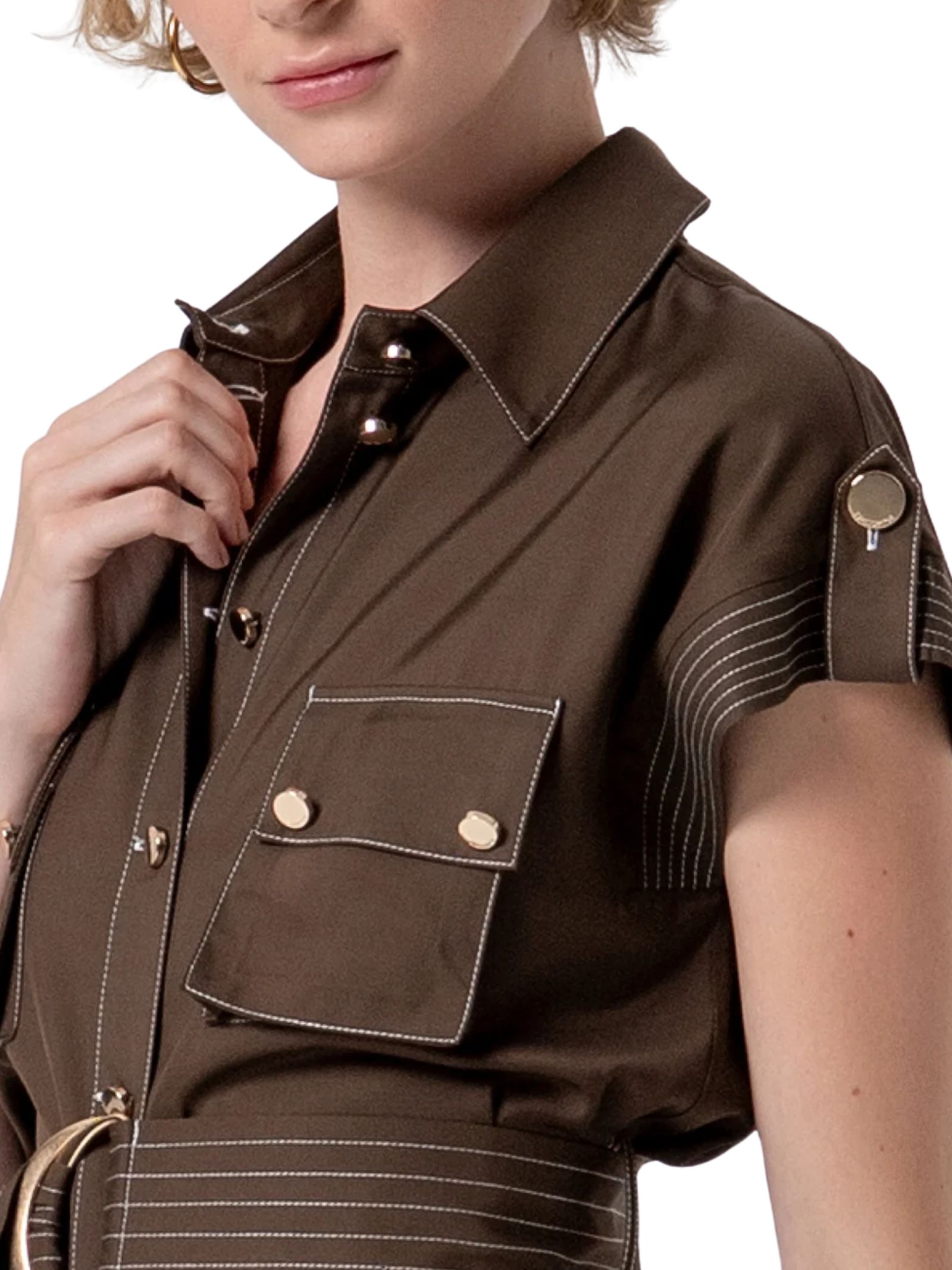 Giacca regular dallo stile urban realizzata in viscosa, con colletto classico, chiusura frontale con bottoni, tasche applicate e cintura abbinata in vita che valorizza la silhouette. Il design è completato da maniche corte con alamari, per un look moderno e versatile.Composizione: viscosa 100%, (cintura in viscosa 100%).
