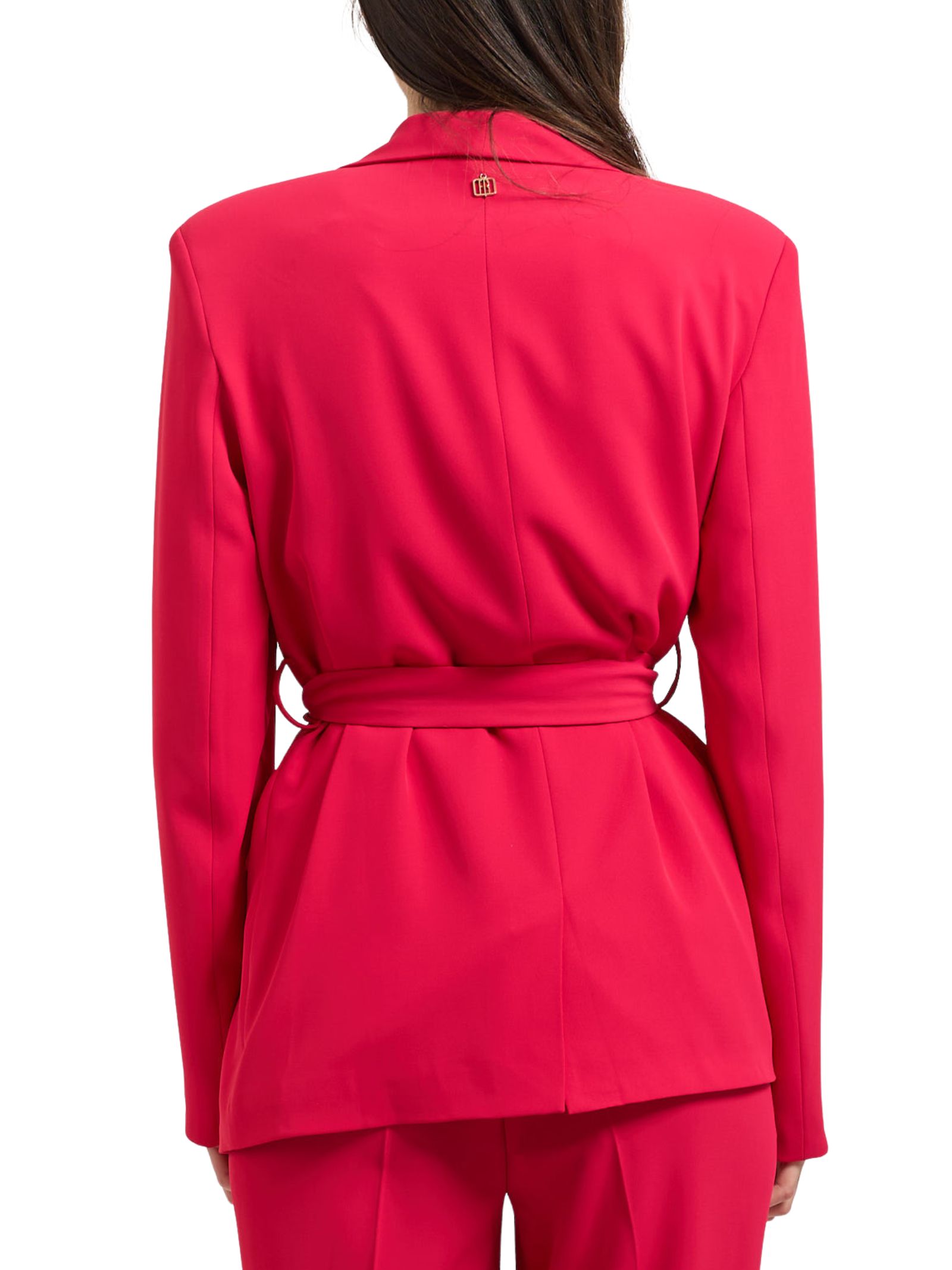 Giacca sartoriale Fracomina con cintura in vita e ciondolo logato sul retro, modello dal taglio femminile e raffinato.