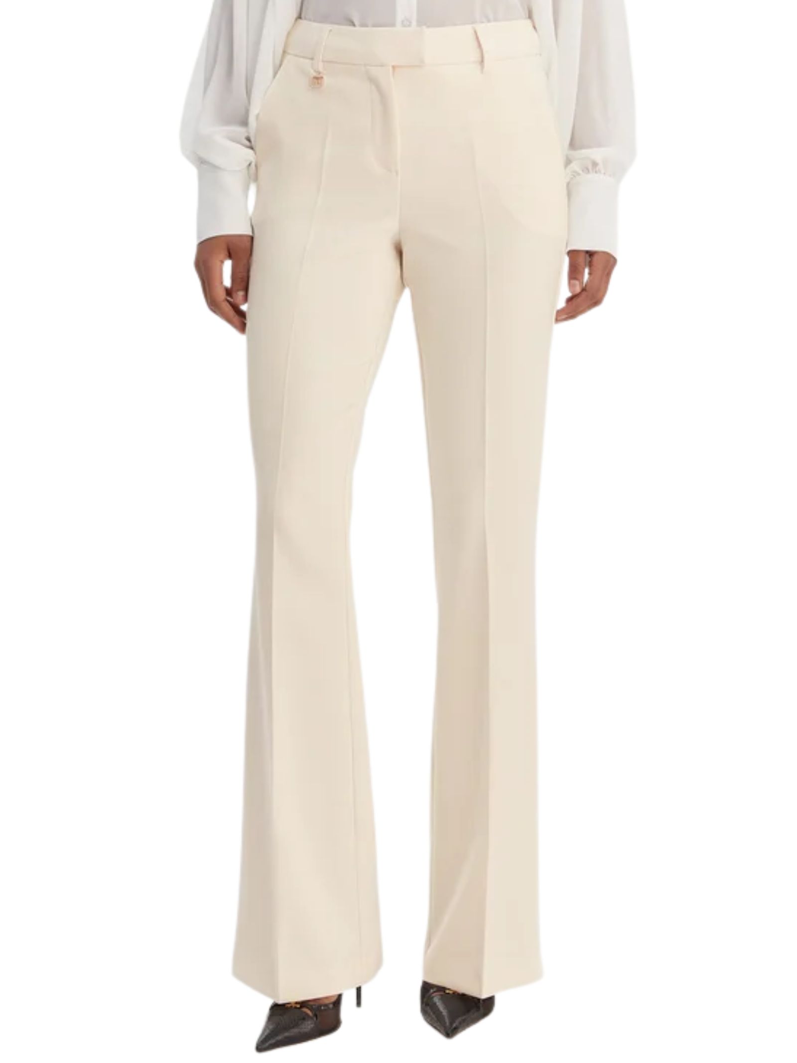 Pantalone regular a vita alta con fondo dritto, caratterizzato da linea pulita e vestibilità confortevole che valorizza la silhouette, ideale per look versatili dal taglio elegante e contemporaneo. Composizione 90% poliestere, 10% elastan.