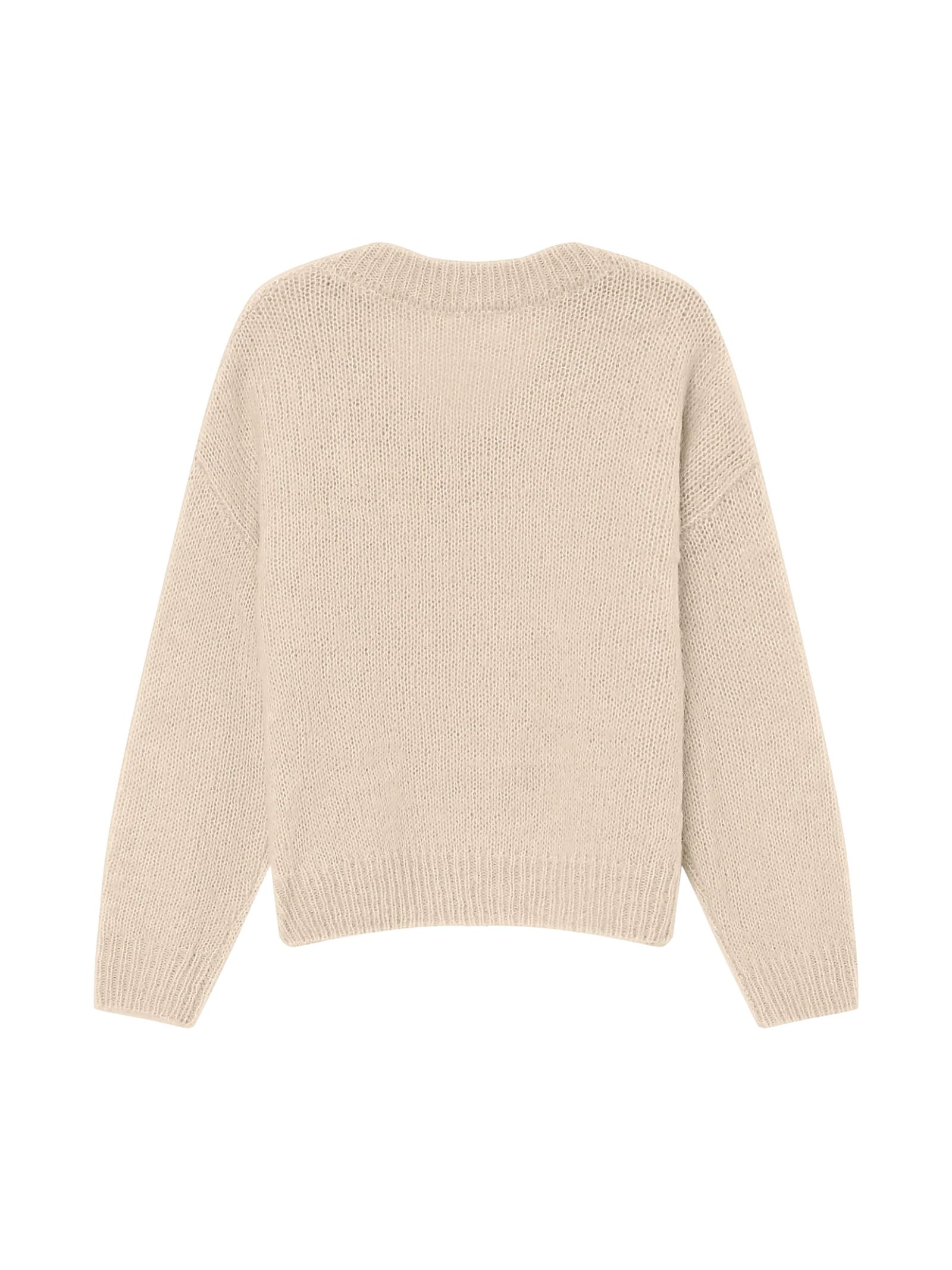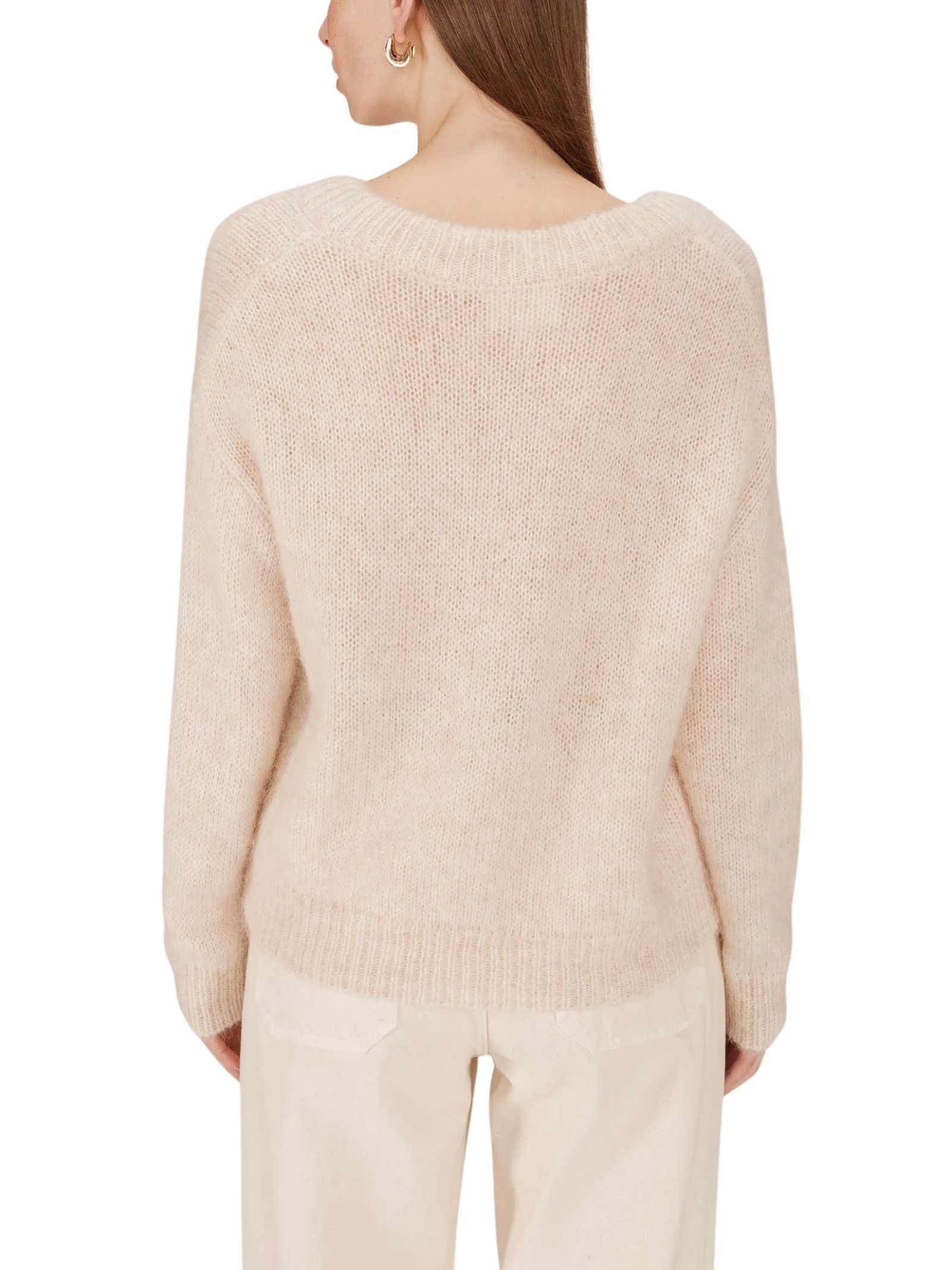 Maglione a maniche lunghe SABADO in misto lana di alpaca, con vestibilità ampia e confortevole, scollo a V con finitura tubolare e linee minimaliste, ideale per un look casual-chic autunnale, realizzato in 34% acrilico, 31% lana, 22% alpaca e 13% nylon.