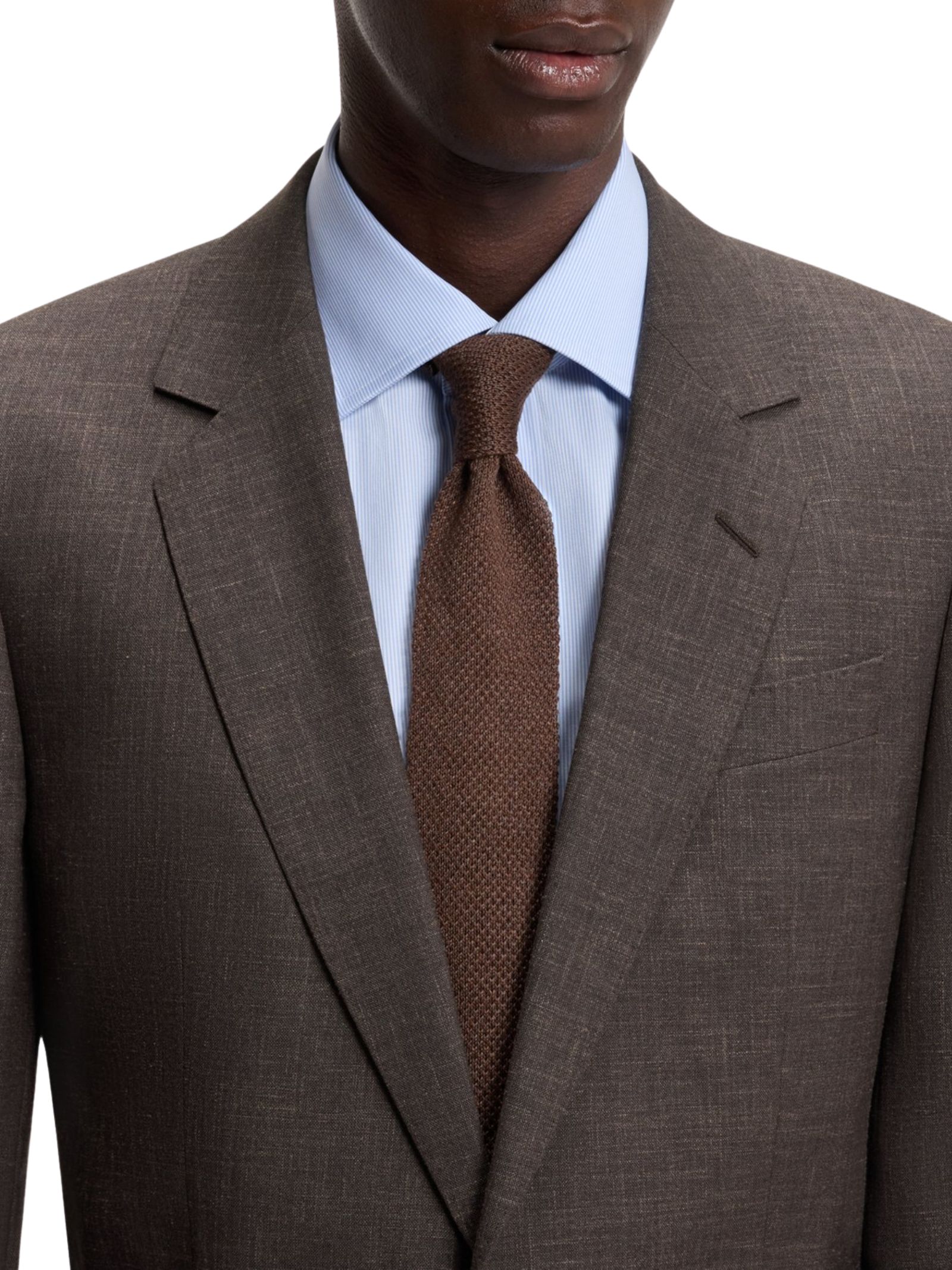 Giacca sartoriale BOSS by David Beckham realizzata in un raffinato mix di lana, seta e lino; vestibilità slim, revers classici e chiusura a due bottoni dall'estetica intramontabile. Tasca a pistagna sul petto, tasche frontali con patta e polsini con bottoni; foderata internamente. Modello ispirato allo stile iconico di David Beckham, reinterpretando un grande classico del guardaroba maschile con un tocco moderno, rendendolo perfetto per outfit casual raffinati o più ricercati. Composizione: 71% lana vergine, 15% seta, 14% lino; fodera: 100% viscosa, fodera manica: 100%viscosa.