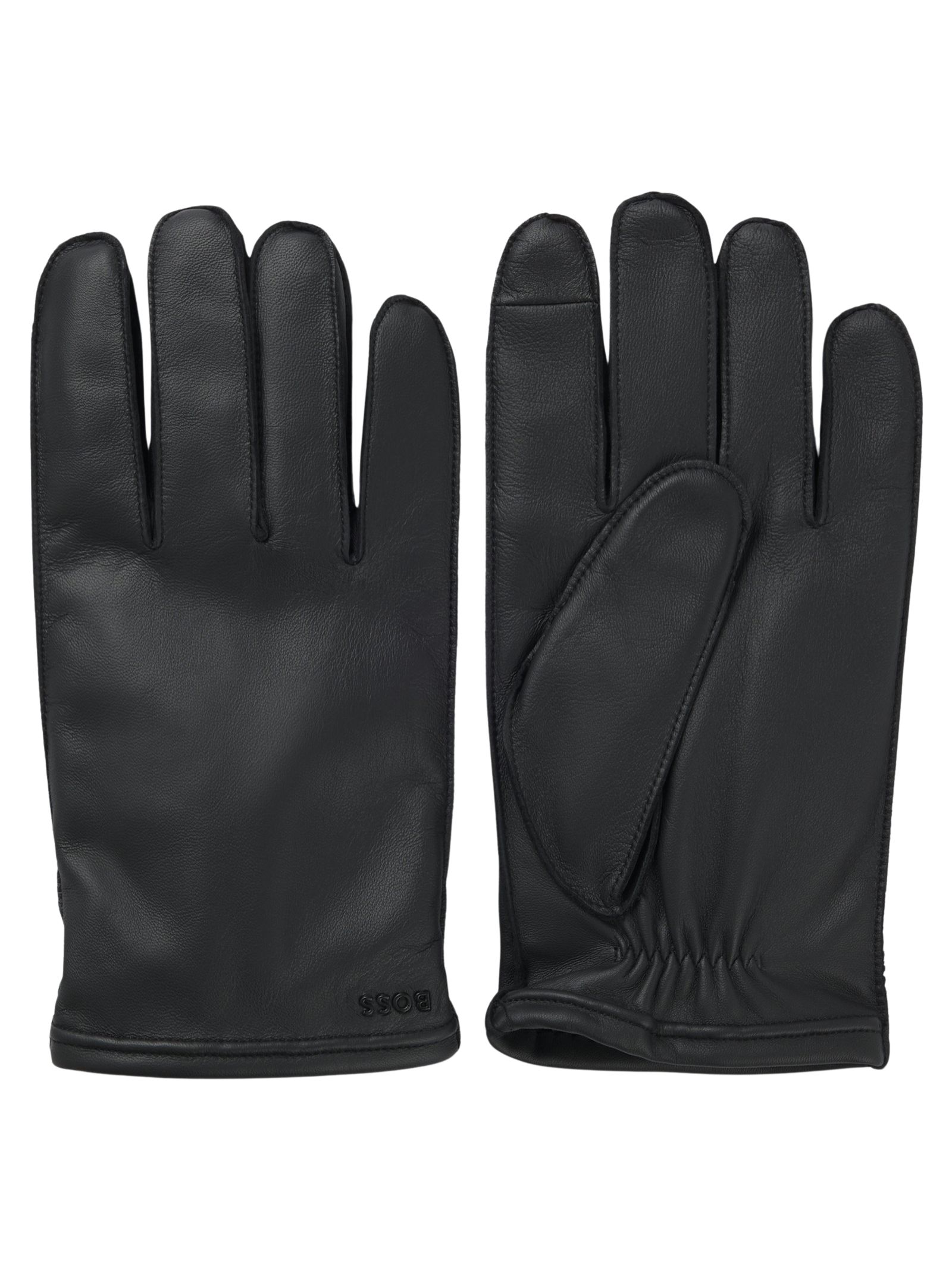 Guanti BOSS in pelle granata, completamente foderati in lana per un comfort superiore. Dotati di dita compatibili con touchscreen e arricchiti da eleganti lettere in metallo come dettaglio logo.