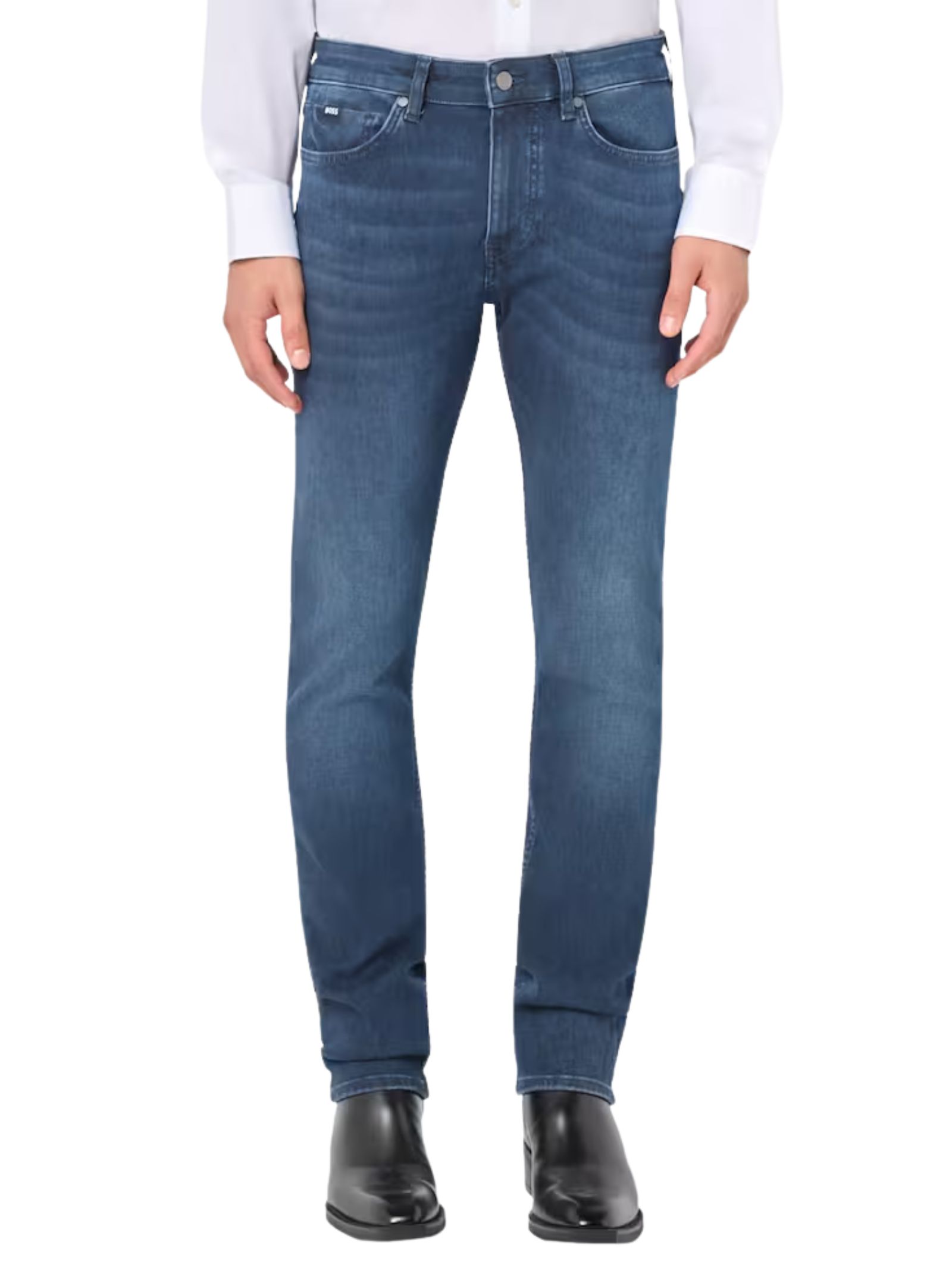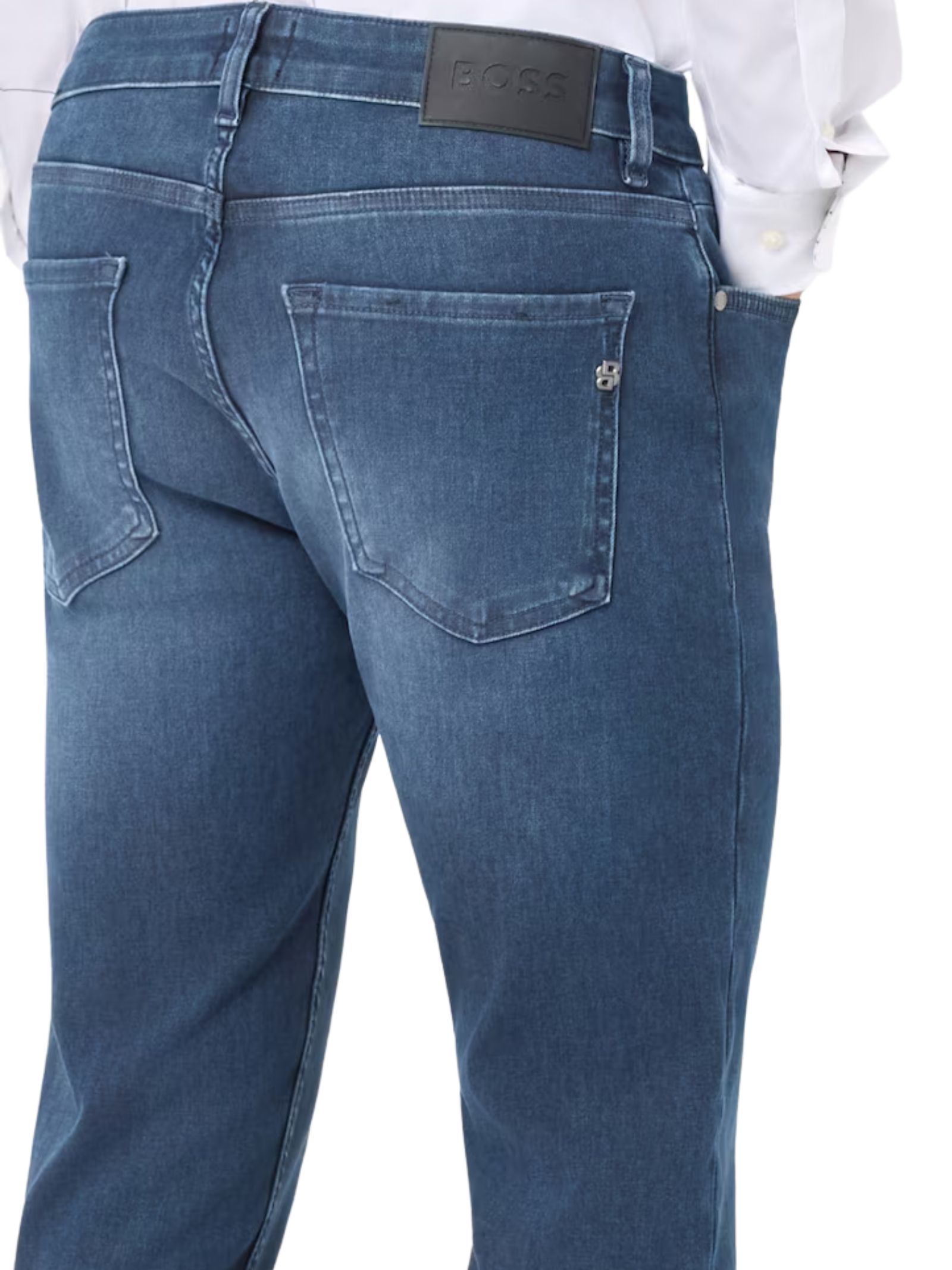 Jeans BOSS dal motivo slavato con vita media, realizzati in denim confortevole ed elasticizzato con composizione 98% cotone e 2% elastan.
