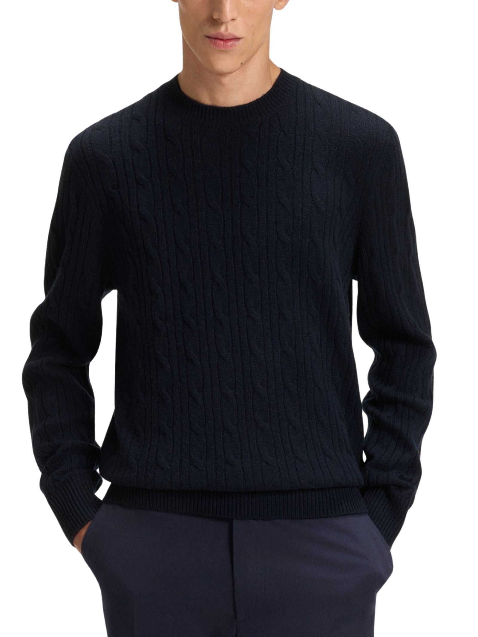 Maglione blu BOSS Menswear in morbida miscela di lana vergine e pregiato cashmere, lavorato a maglia con classica struttura a trecce e caratterizzato da una vestibilità regolare e casual. Materiale: 90% lana vergine, 10% cashmere.