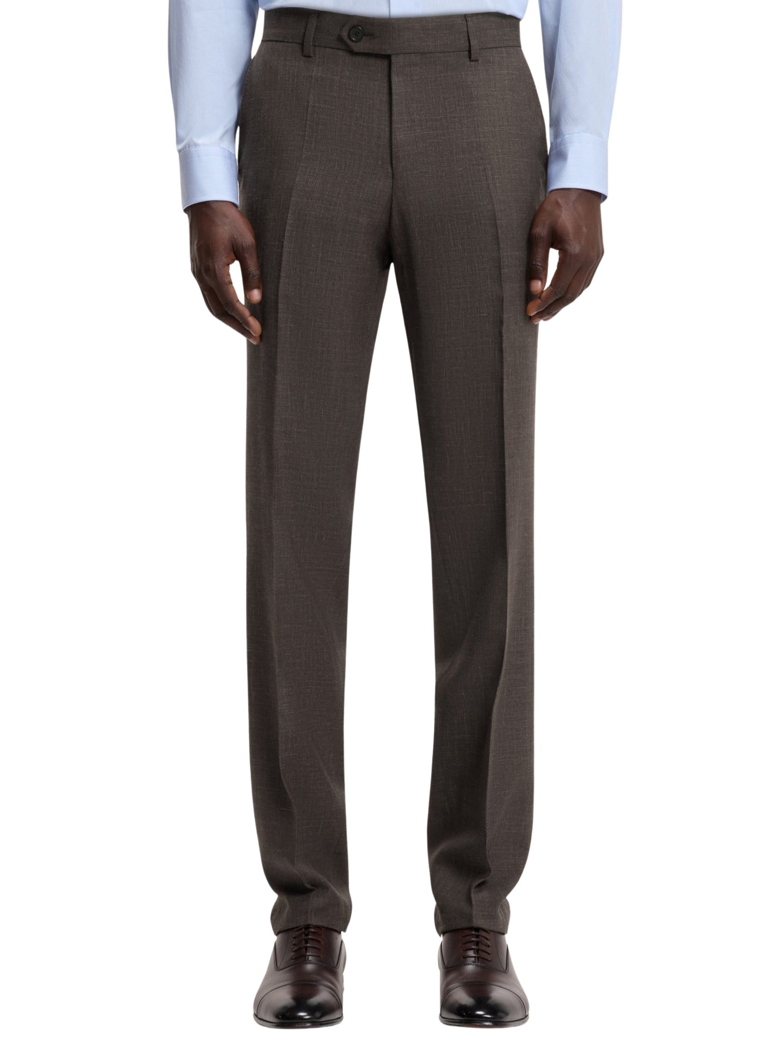 Pantaloni BOSS by David Beckham realizzati in un lussuoso mix di lana, seta e lino, dal raffinato design pulito e un taglio slim moderno, perfetto per look sartoriali contemporanei; parte anteriore plissettata per un tocco elegante,chiusura con gancetto e zip; tasche laterali aperte e tasca posteriore con pistagna e bottoni.