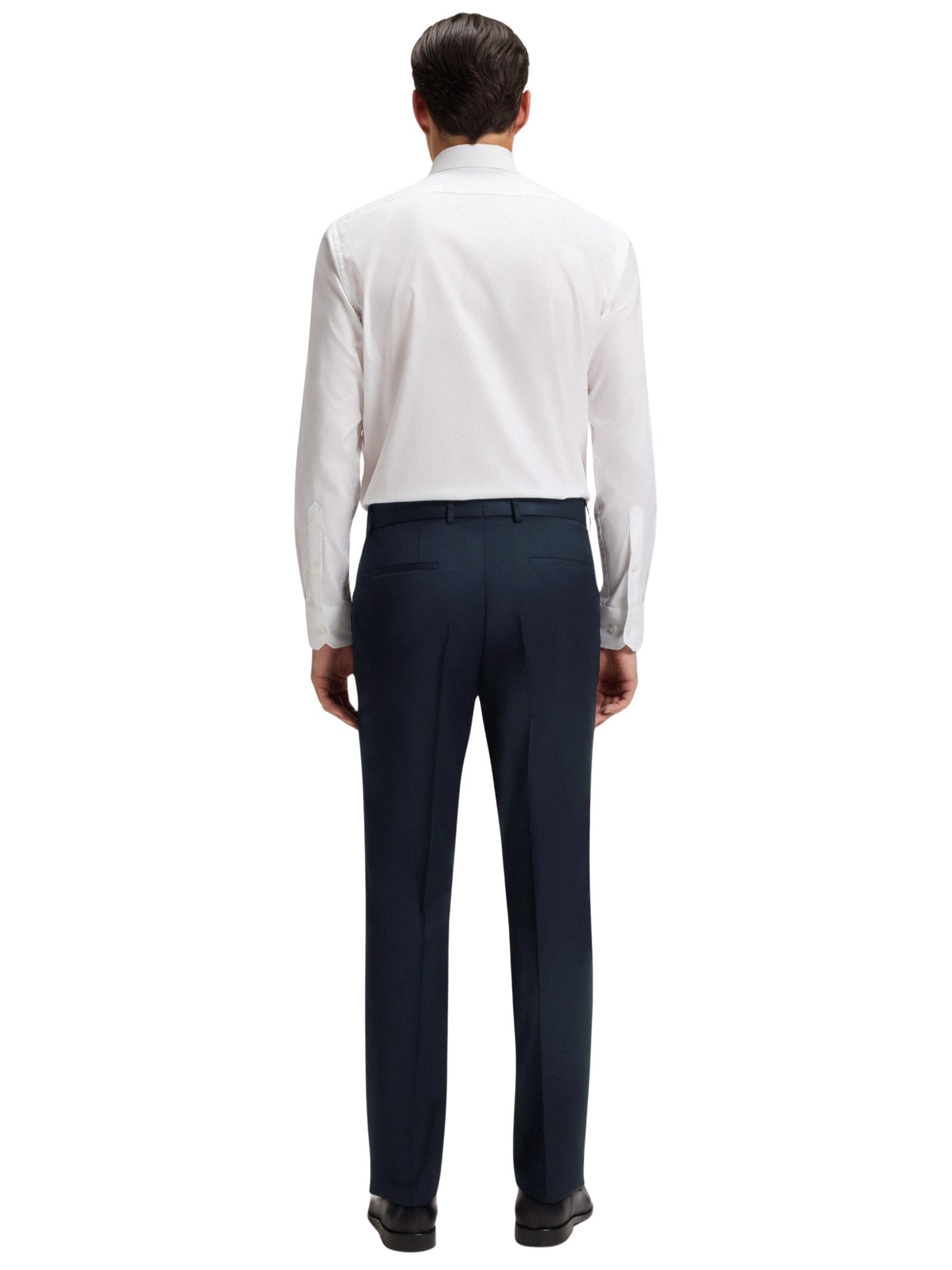 Pantaloni formali BOSS Uomo in lana vergine finissima con trama serge ed elasticità naturale, ideali per una figura impeccabile. Presentano slim fit, chiusura con gancetto e zip, taglio dritto, pieghe frontali, tasche alla francese e tasca a filetto sul retro. Parzialmente foderati. Materiali: 100% lana vergine. Fodera tasche: 65% poliestere, 35% cotone. Fodera ginocchio: 100% viscosa.