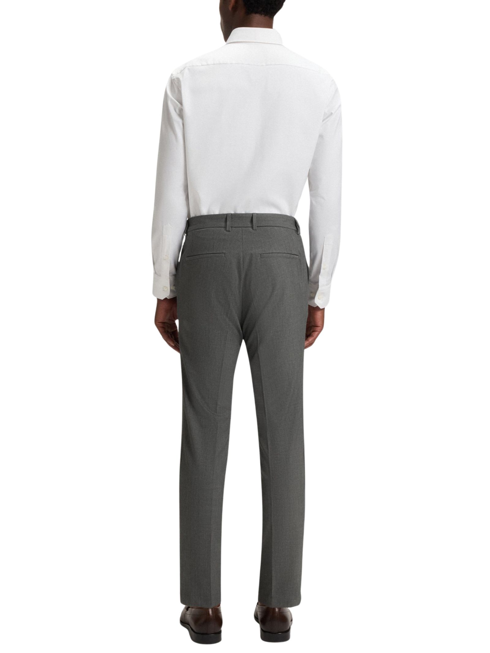 Pantaloni BOSS Menswear, realizzati in tessuto microfantasia con micro-elasticizzazione per un comfort ottimale. Presentano vestibilità slim fit, chiusura con bottone e cerniera, tasche laterali a filetto e tasca posteriore a filetto. Parzialmente foderati.