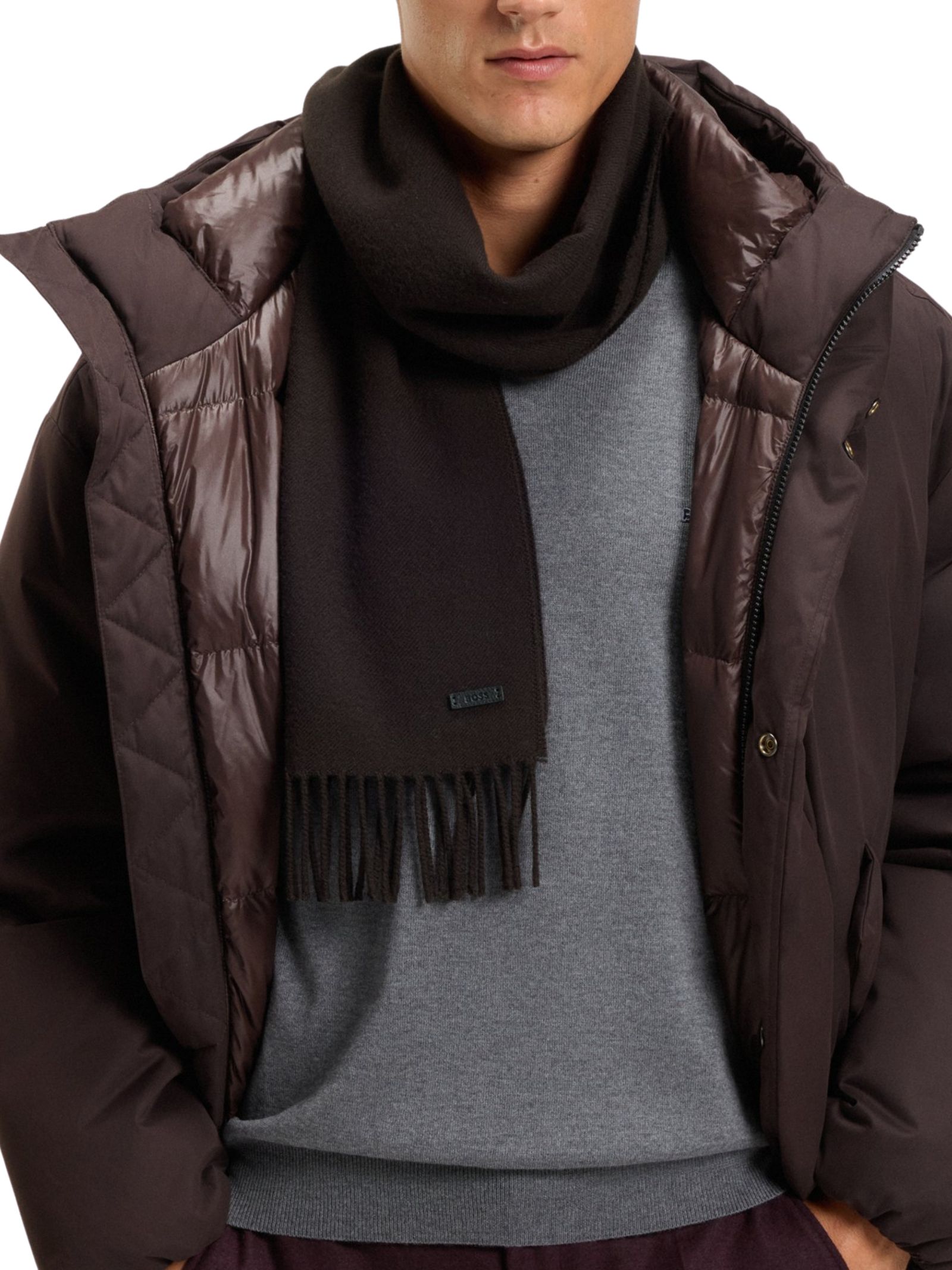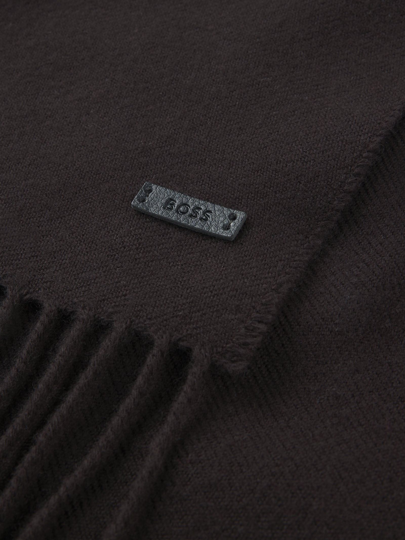 Sciarpa BOSS Menswear in morbido twill di lana con estremità sfrangiate, patch con logo in tessuto sintetico effetto similpelle e design caldo ideale per le giornate fredde. Realizzata con almeno l80% di materie prime migliori e lana proveniente da fonti responsabili. Misure: 164 x 32 cm. Composizione: 100% lana.