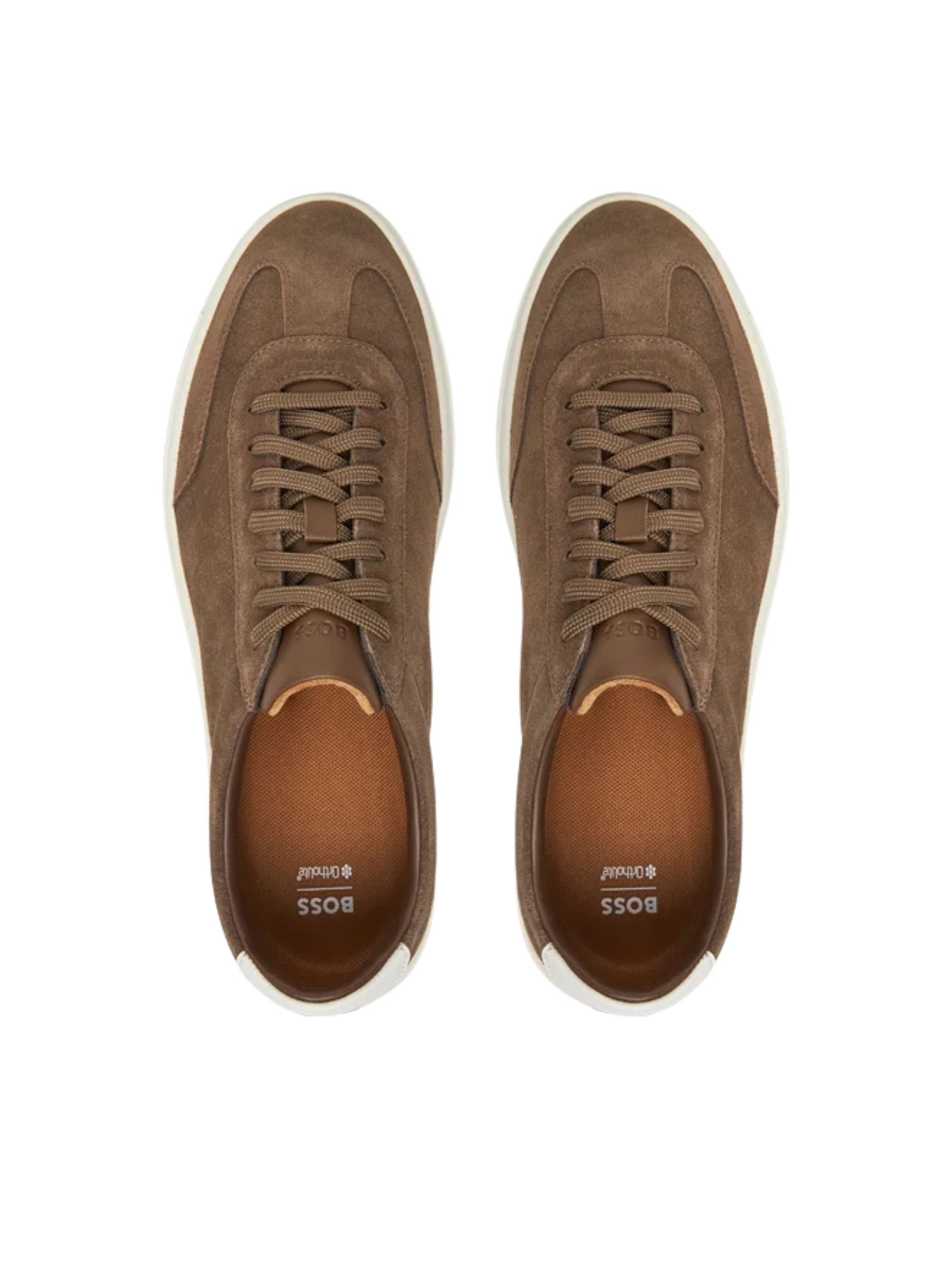 Sneakers BOSS Kieran in pelle scamosciata. Colore Marrone. Scritta iconica del brand tono su tono laterale.