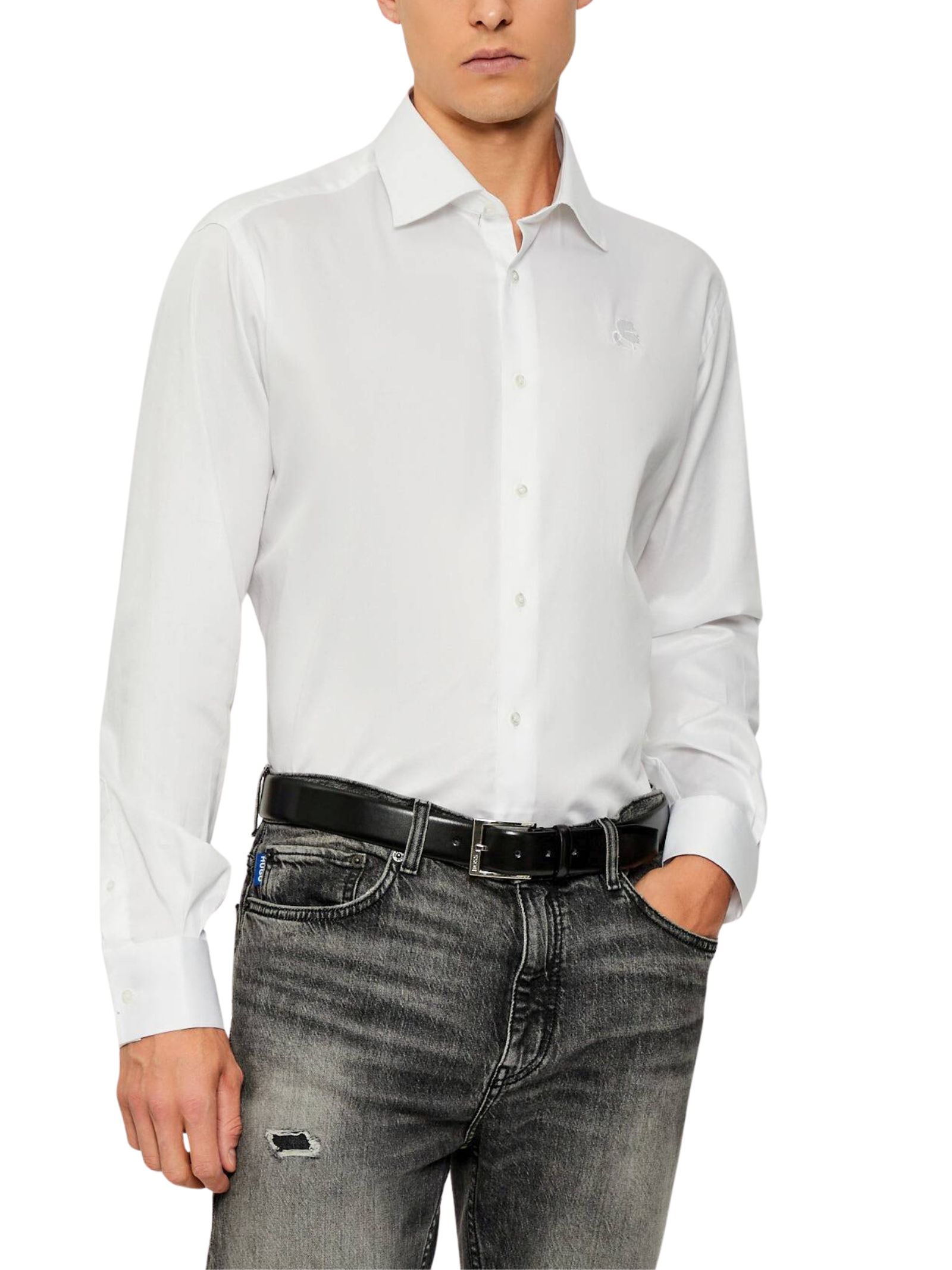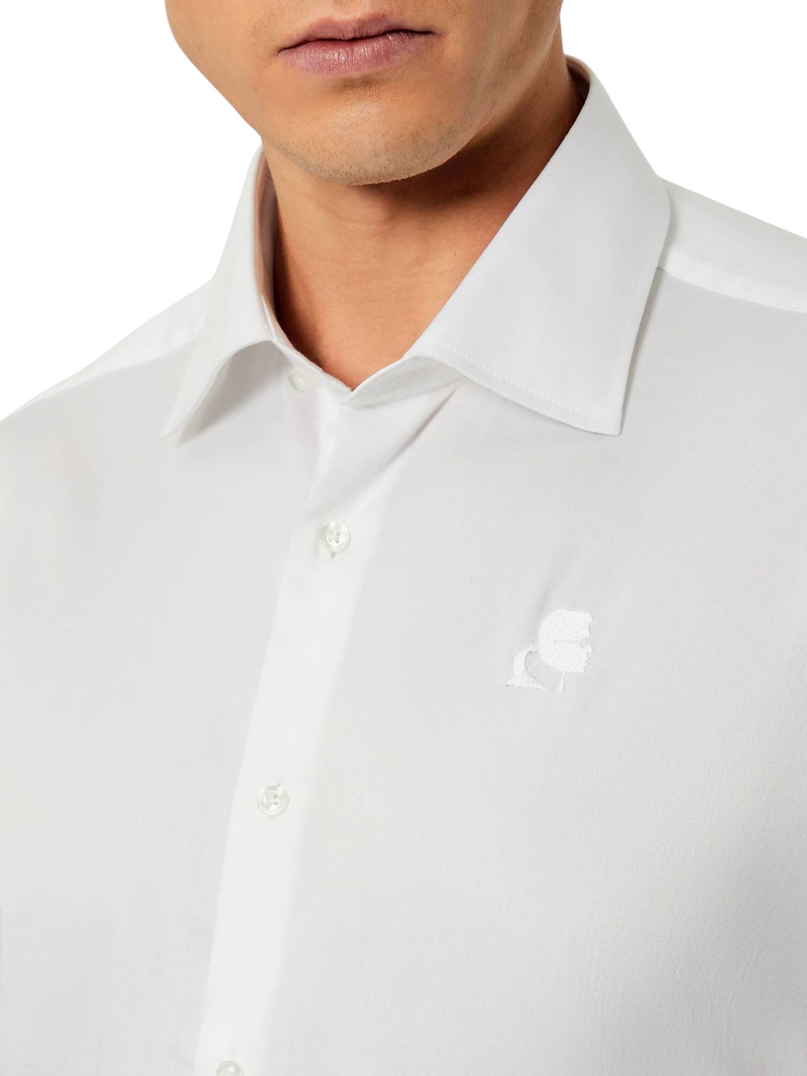 Camicia Karl Lagerfeld bianca in modern fit con logo iconico ricamato sul petto tono su tono. Composizione 98% cotone, 2% spandex