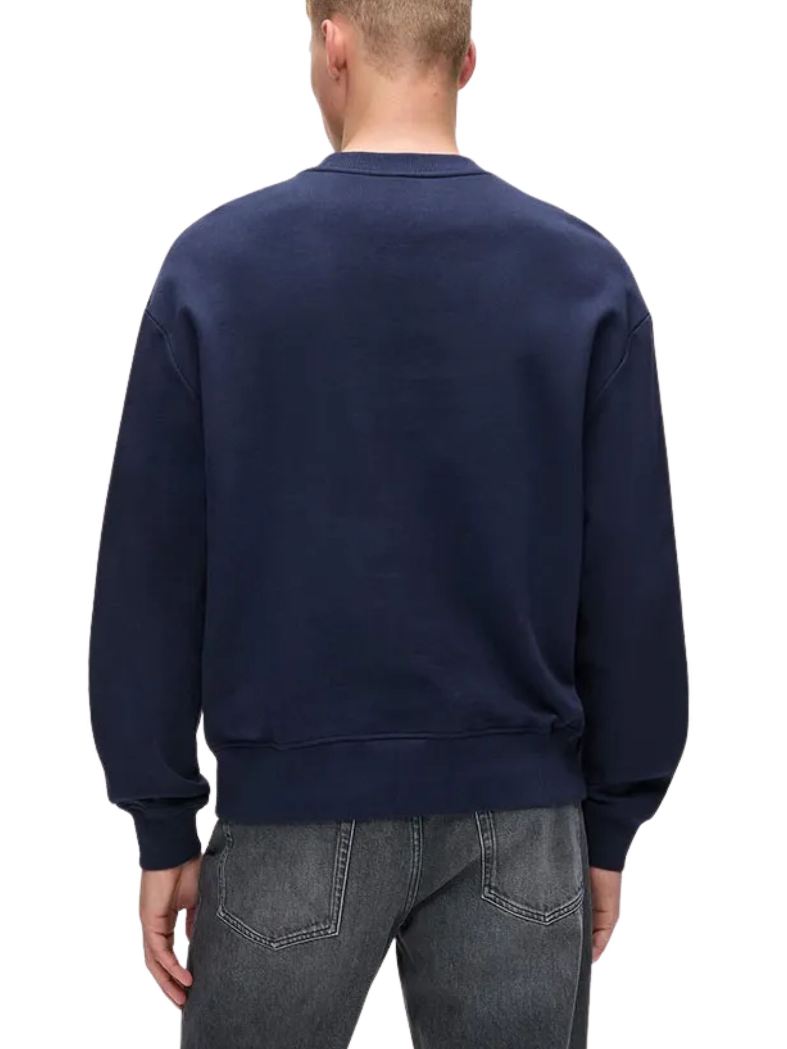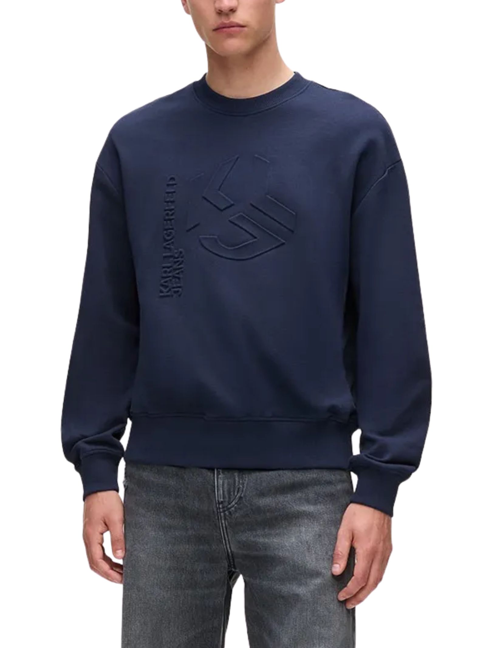 Questa felpa presenta un design pulito e moderno, caratterizzato da un ampio logo KARL LAGERFELD JEANS in rilievo sul petto che aggiunge un tocco distintivo e di carattere. Realizzata in un tessuto morbido e strutturato, offre una vestibilità comoda con girocollo classico, maniche leggermente ampie e finiture a costine su colletto, polsini e orlo. Il colore blu intenso la rende versatile e facile da abbinare, perfetta per un look casual contemporaneo.