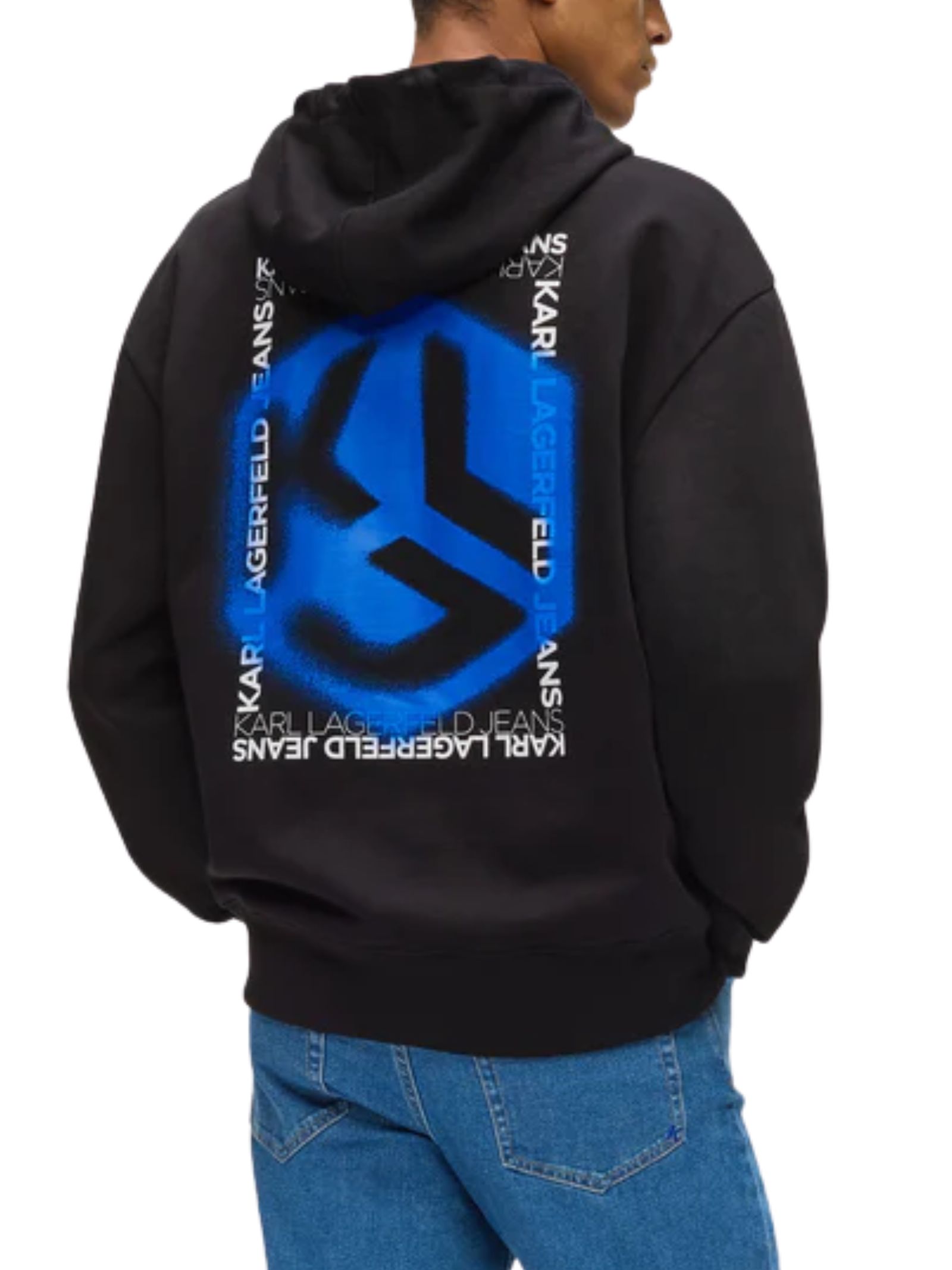 Felpa con cappuccio Karl Lagerfeld Jeans dal carattere deciso, con silhouette ampia e disinvolta, finiture a costine su colletto, polsini e orlo, logo KARL LAGERFELD JEANS sul davanti a sinistra e audace grafica Monogram ispirata ai graffiti sul retro, perfetta per look streetwear di forte impatto. Composizione: 100% cotone organico.