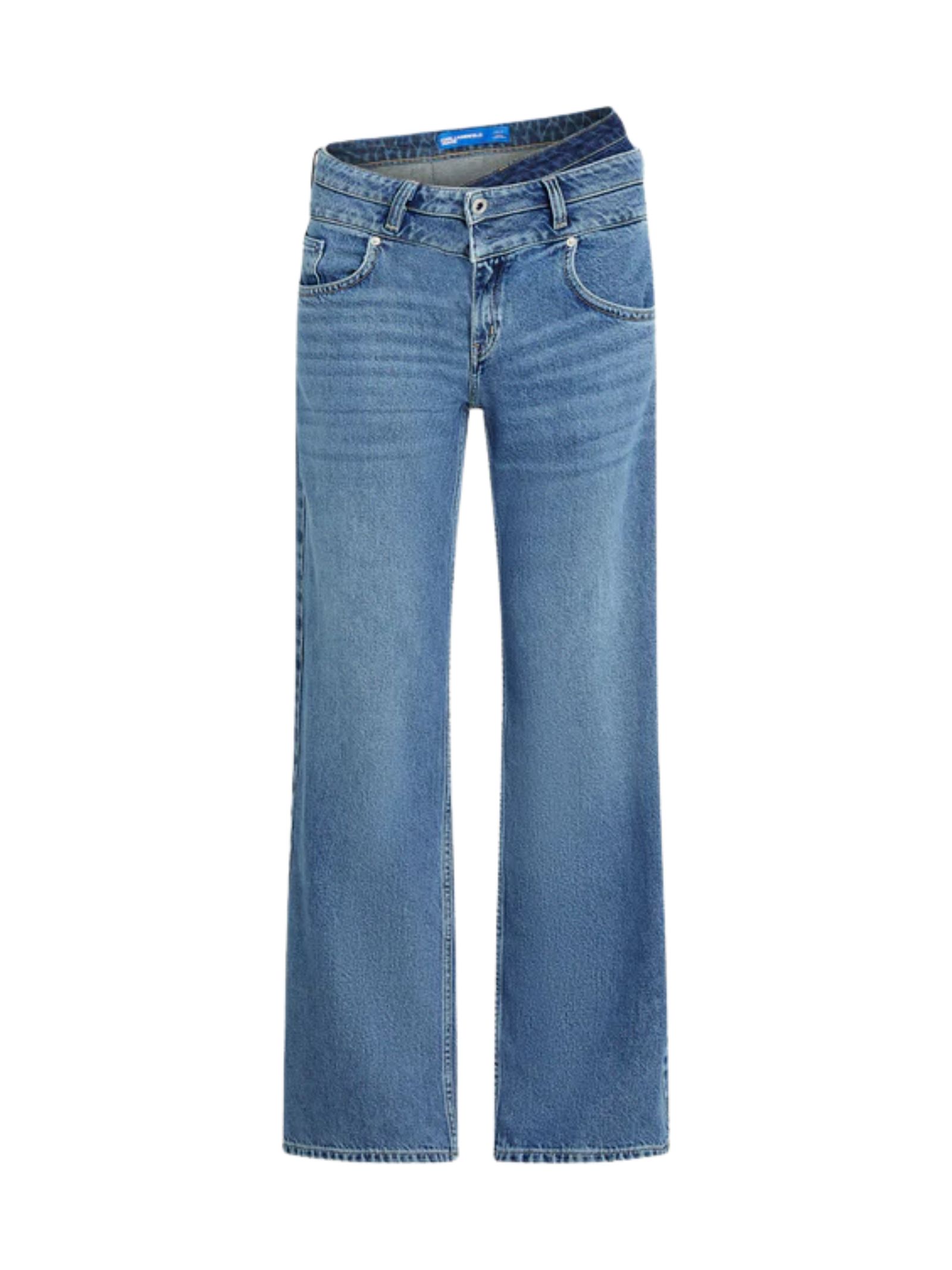 Jeans dalla vestibilità relaxed. Caratterizzati da una vita media con doppio dettaglio cintura e bottone griffato con gambo. Completano il design letichetta in pelle KARL LAGERFELD JEANS sulla parte posteriore della vita e liniziale "K" ricamata sulla tasca posteriore. Realizzati in 100% cotone organico.