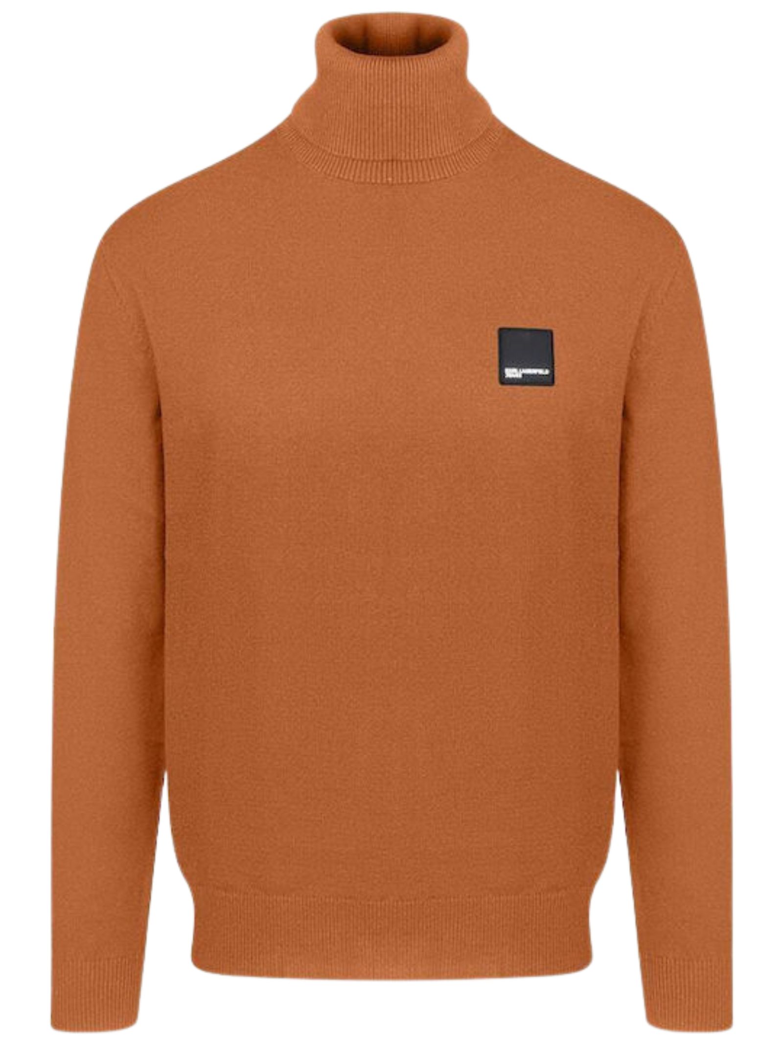 Maglione ocra Karl Lagerfeld Jeans, realizzato in maglia fine di leggero cotone. Appartenente alla linea sostenibile Karl Cares, è prodotto con materiali ottenuti tramite processi rispettosi dellambiente. Il modello presenta un dolcevita a collo alto, taglio semplice, dettagli decorativi e finiture con polsini elastici su maniche e orlo. Composizione: 100% cotone.