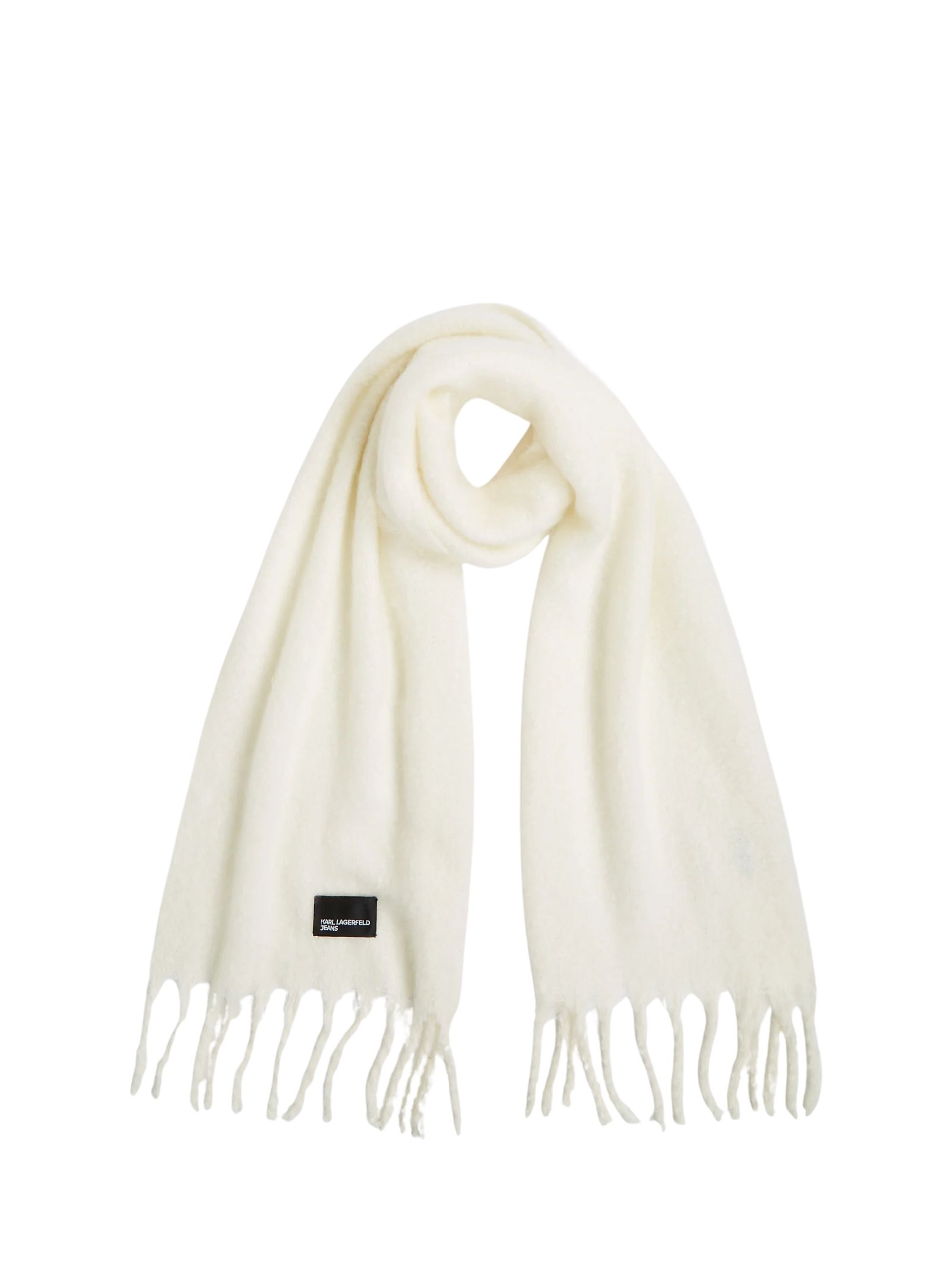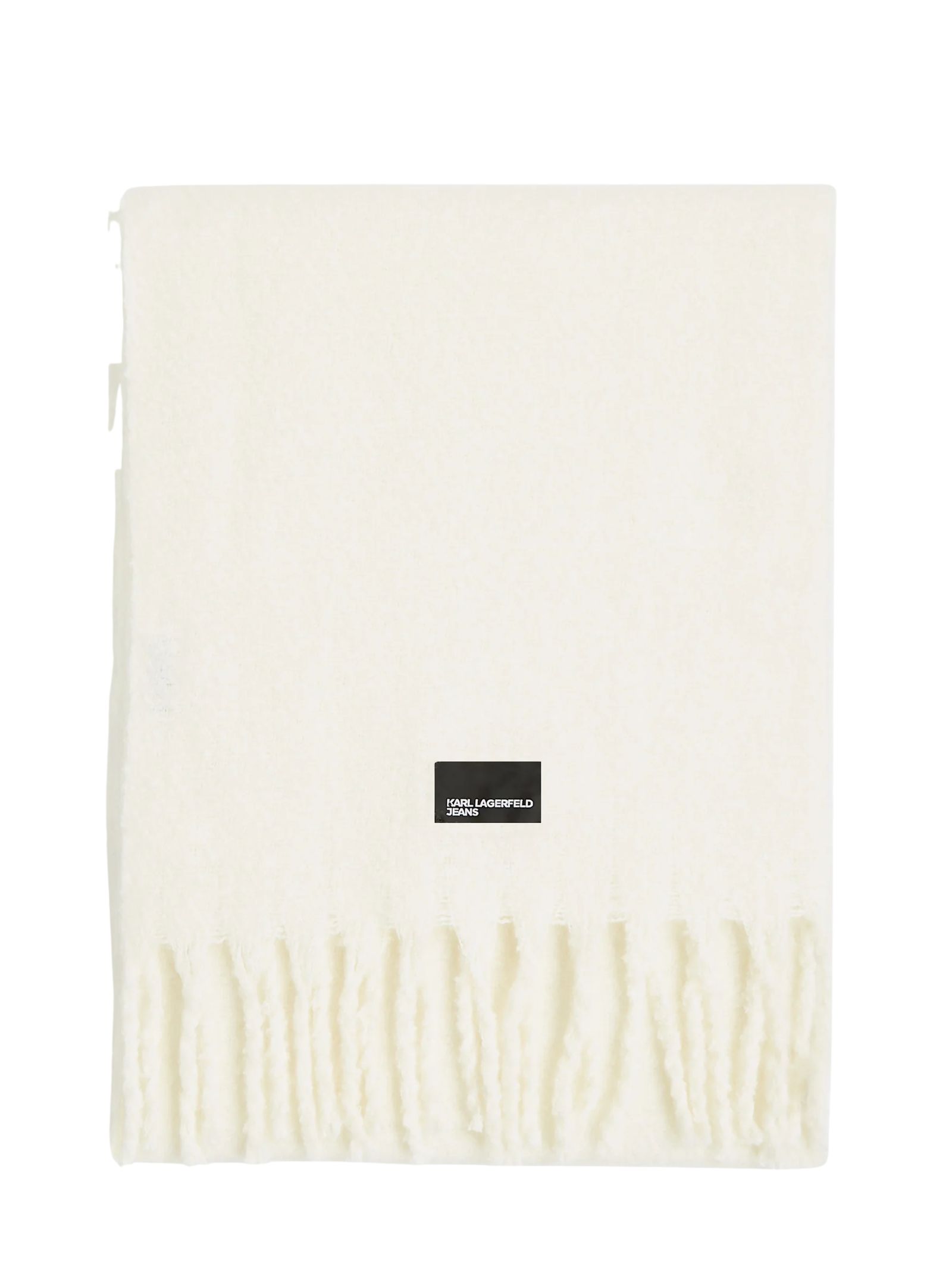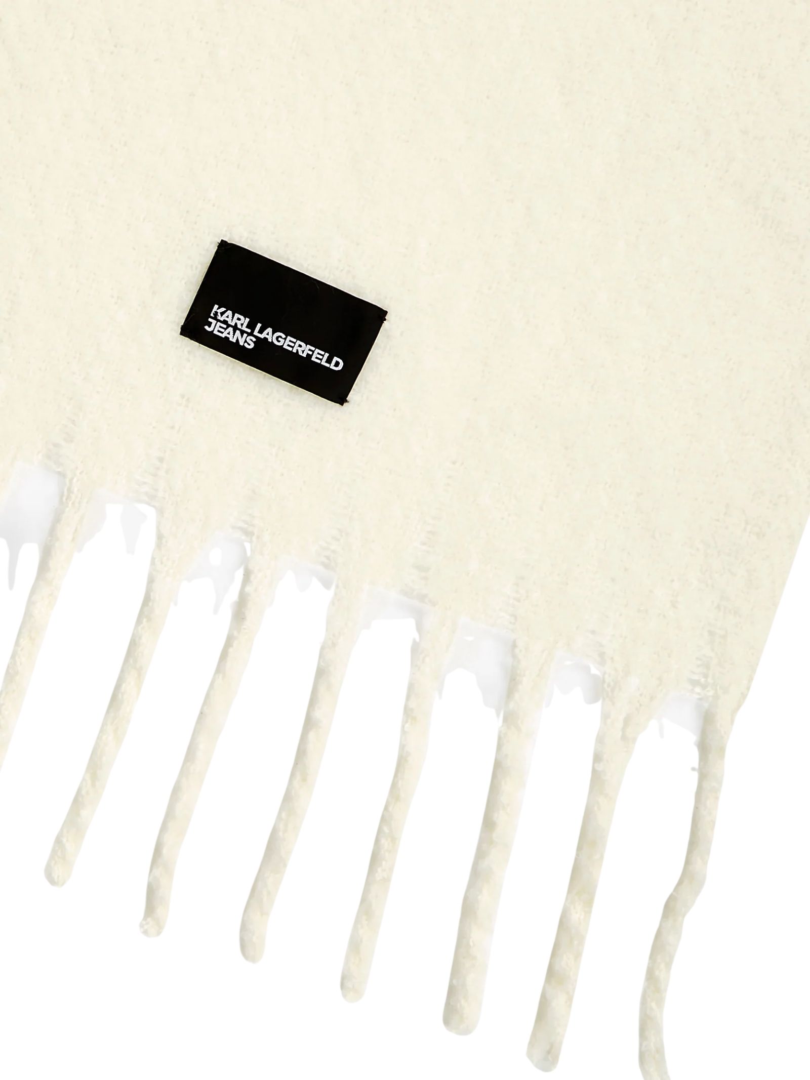 Sciarpa Karl Lagerfeld Jeans in maglia a calibro medio con frange, dal peso medio ideale per la mezza stagione. Dimensioni: 47 x 213 cm. Composizione 53% Poliestere, 47% Acrilico