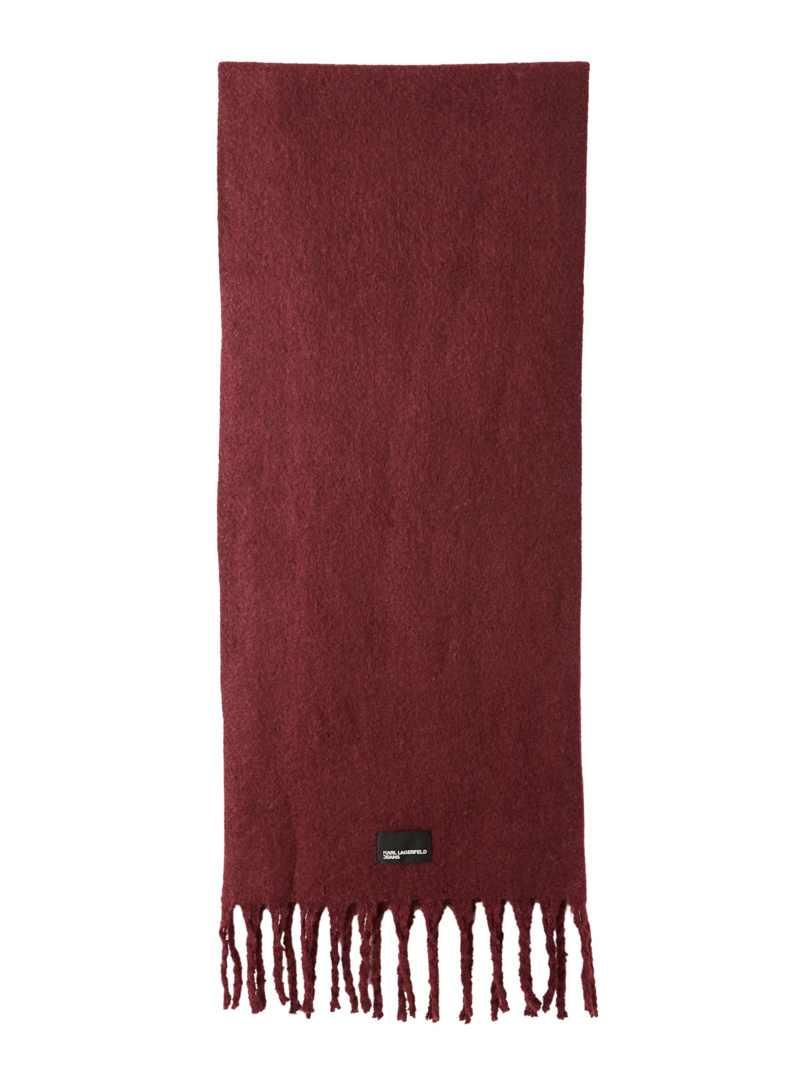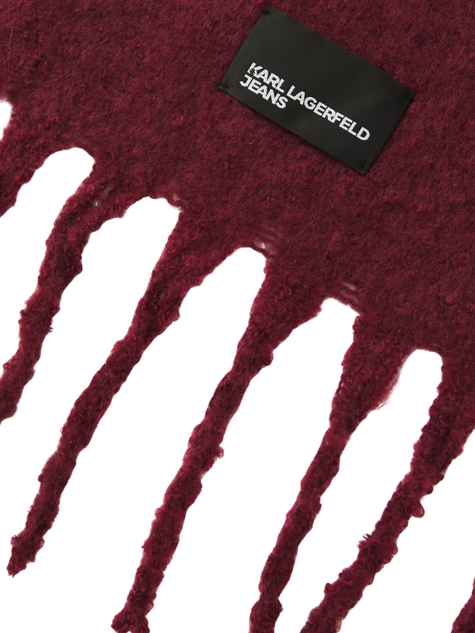 Sciarpa Karl Lagerfeld Jeans in maglia a calibro medio con frange, dal peso medio ideale per la mezza stagione. Dimensioni: 47 x 213 cm. Composizione 53% Poliestere, 47% Acrilico