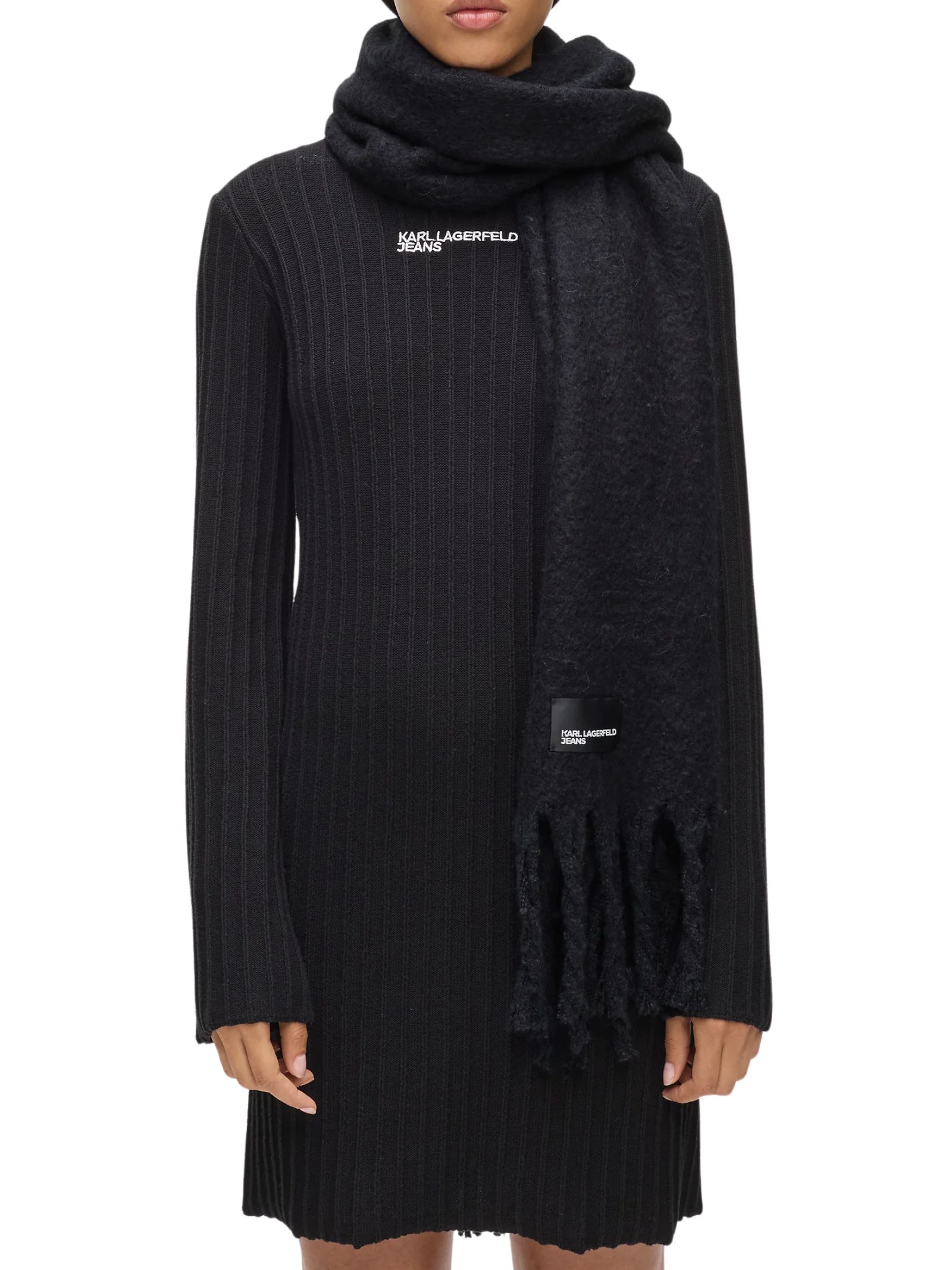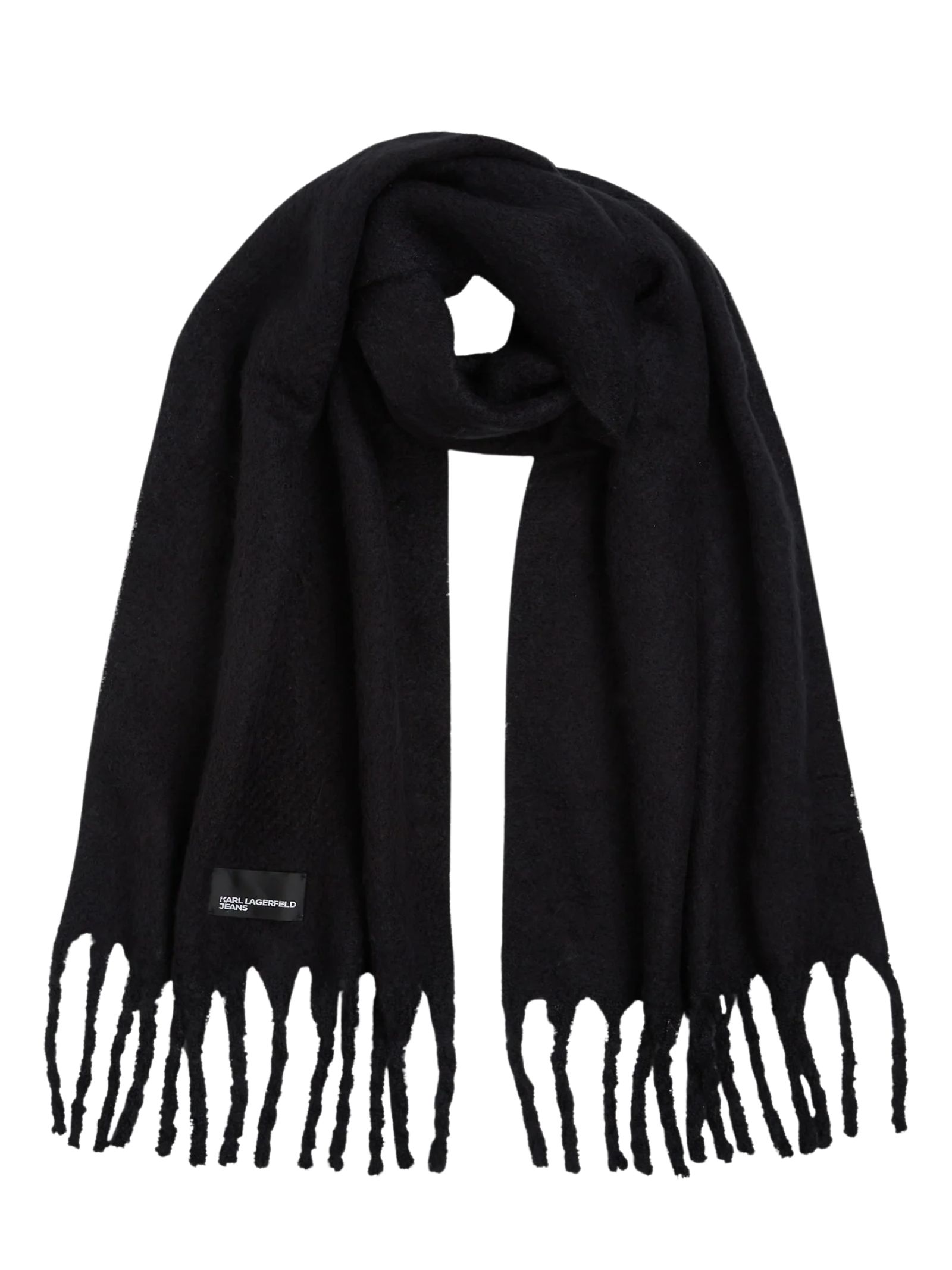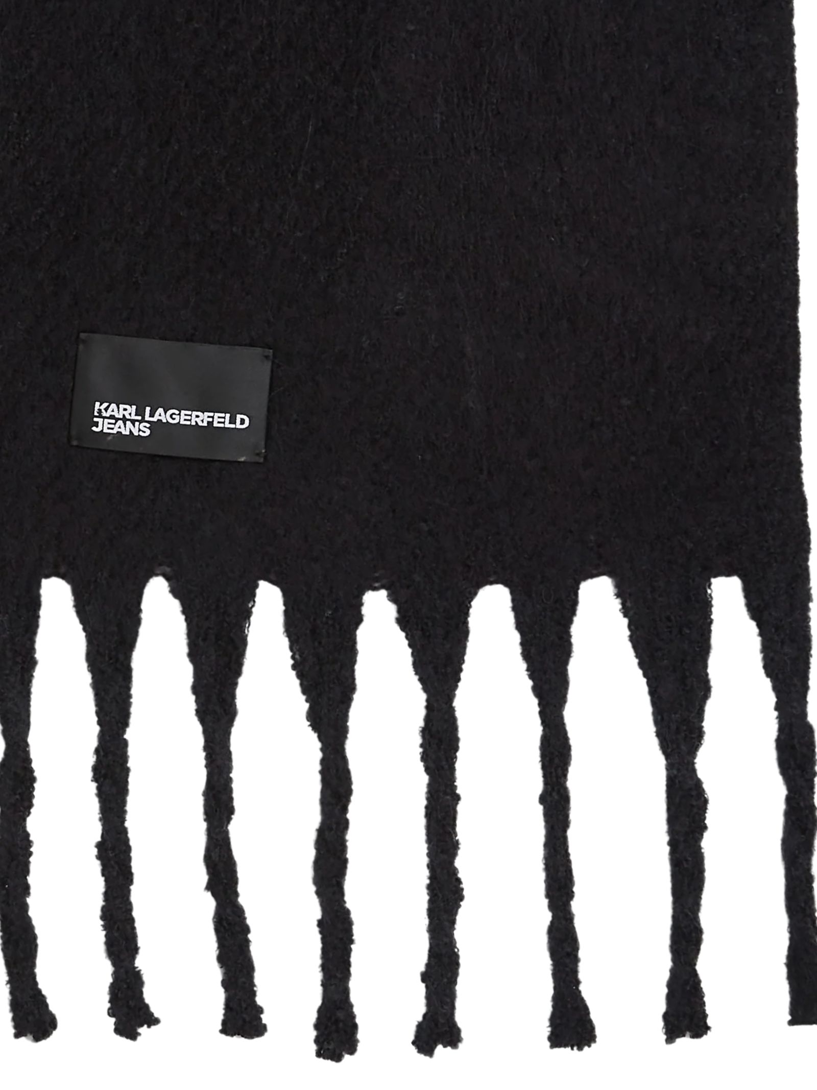 Sciarpa Karl Lagerfeld Jeans in maglia a calibro medio con frange, dal peso medio ideale per la mezza stagione. Dimensioni: 47 x 213 cm. Composizione 53% Poliestere, 47% Acrilico