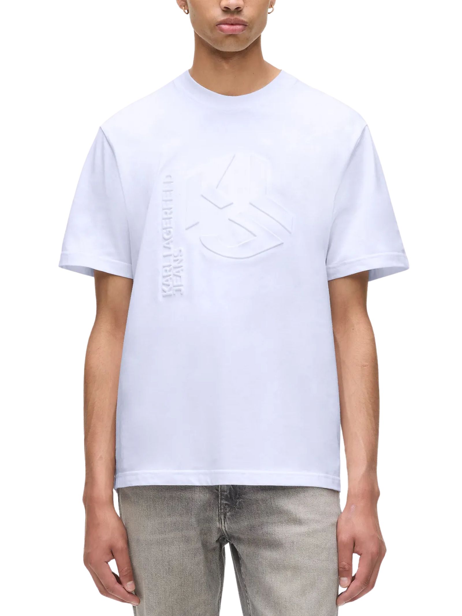 T-shirt bianca regular fit, vestibiltà relaxed, con logo Karl Lagerfeld Jeans a rilievo. 100% cotone