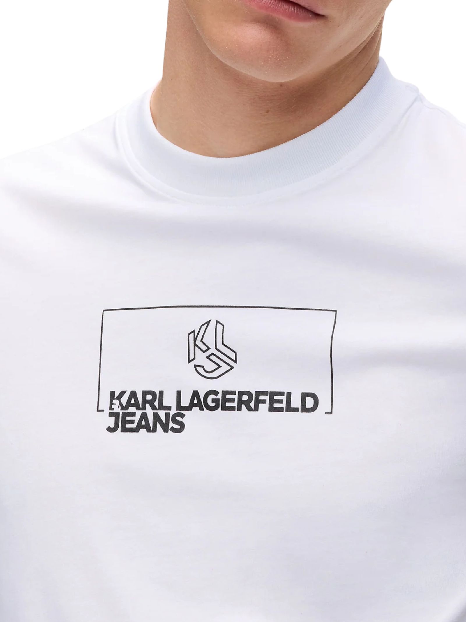 T-shirt Karl Lagerfeld Jeans in maglia fine elasticizzata, realizzata in cotone estremamente confortevole. Presenta regular fit, classico girocollo rotondo e motivo stampato.