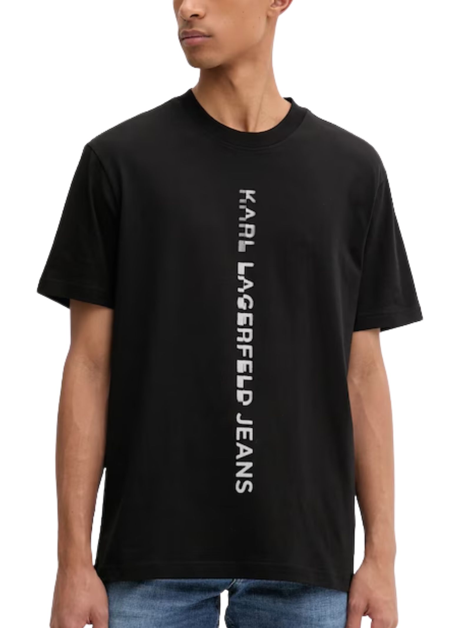 T-shirt Karl Lagerfeld Jeans in maglia fine elasticizzata, realizzata in cotone biologico estremamente confortevole. Caratterizzata da regular fit, classico girocollo rotondo e motivo stampato. Composizione: 100% cotone biologico.