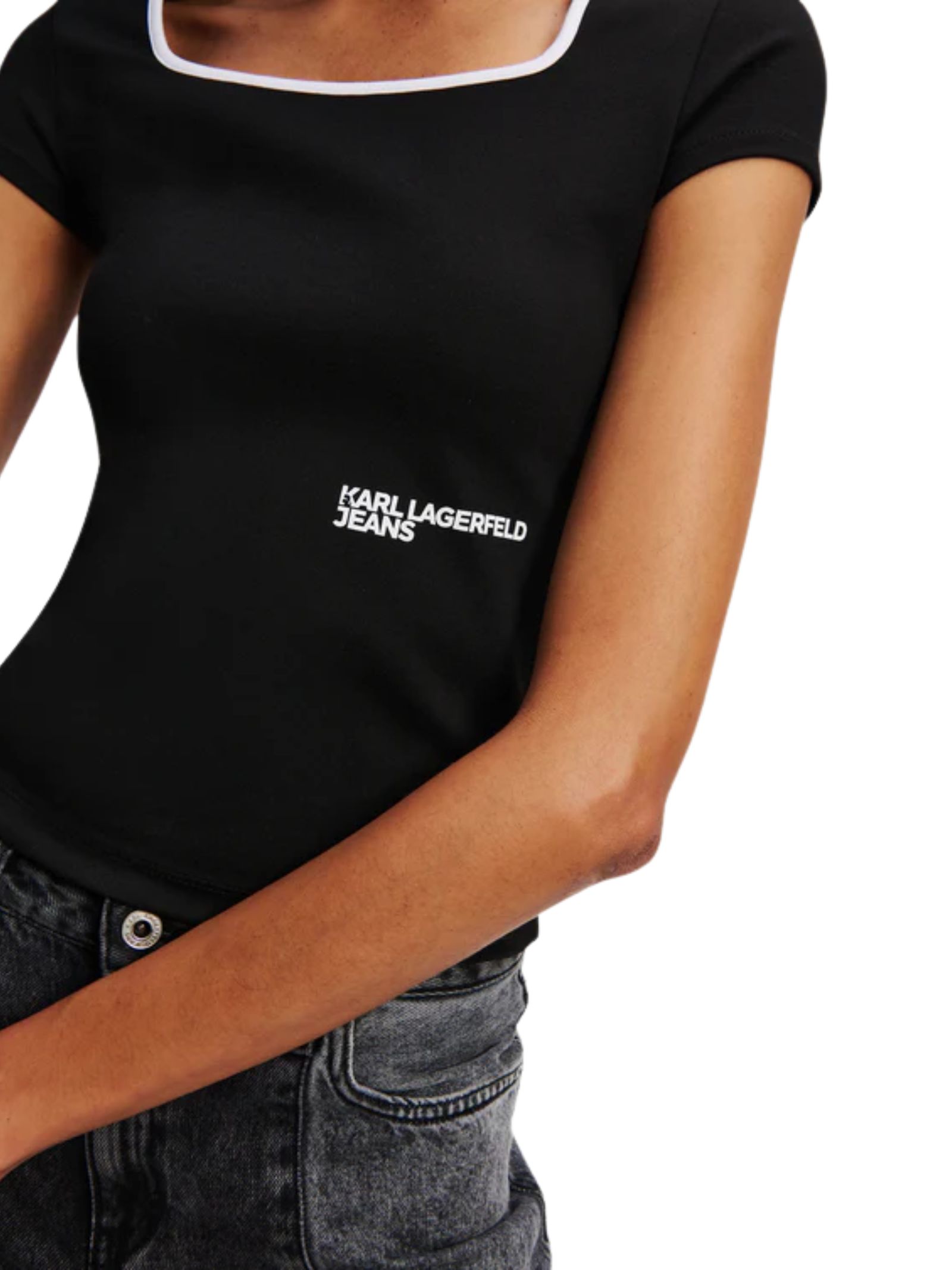T shirt Karl Lagerfeld Jeans con scollatura quadrata e vestibilità slim fit. Composizione: 67%Viscosa 28%Poliammide 5%Elastan