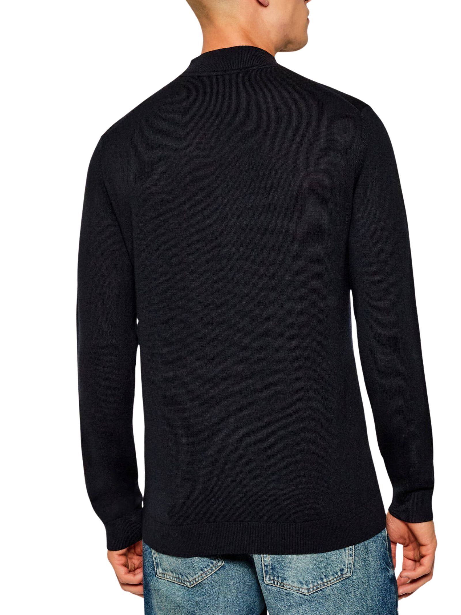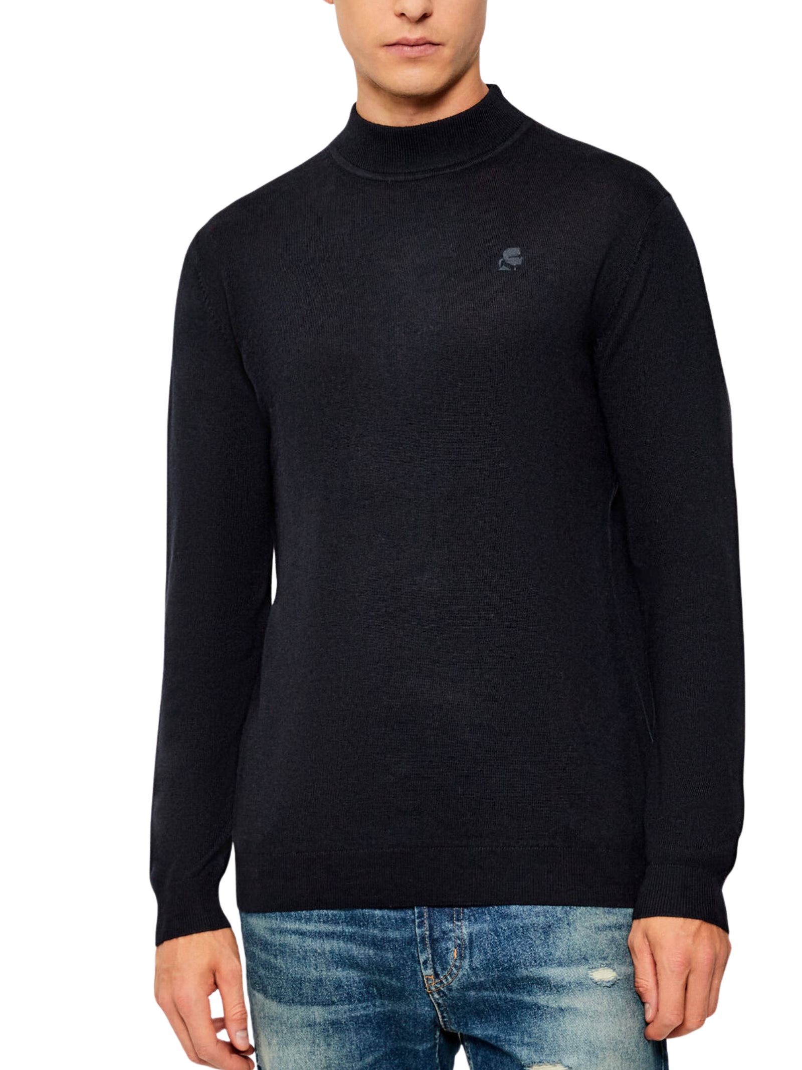 Maglioncino blu Karl Lagerfeld in pura lana con mezzo dolcevita, un capo essenziale e versatile ideale per un look raffinato e confortevole. La vestibilità Regular Fit garantisce comfort e libertà di movimento, mentre il colore blu marino lo rende facilmente abbinabile a diversi outfit. Il modello indossa la taglia L ed è alto 188 cm. Composizione: 100% lana.