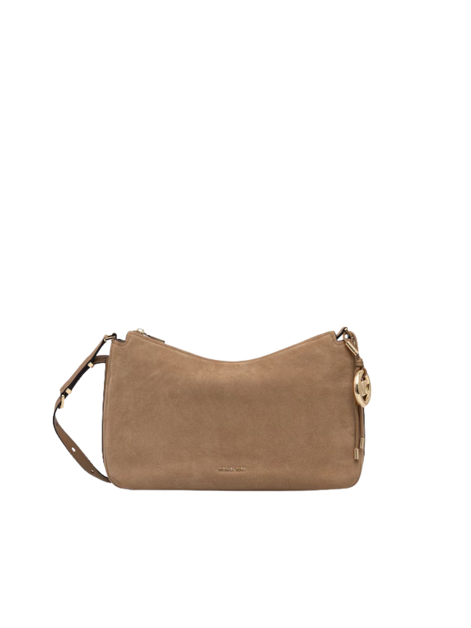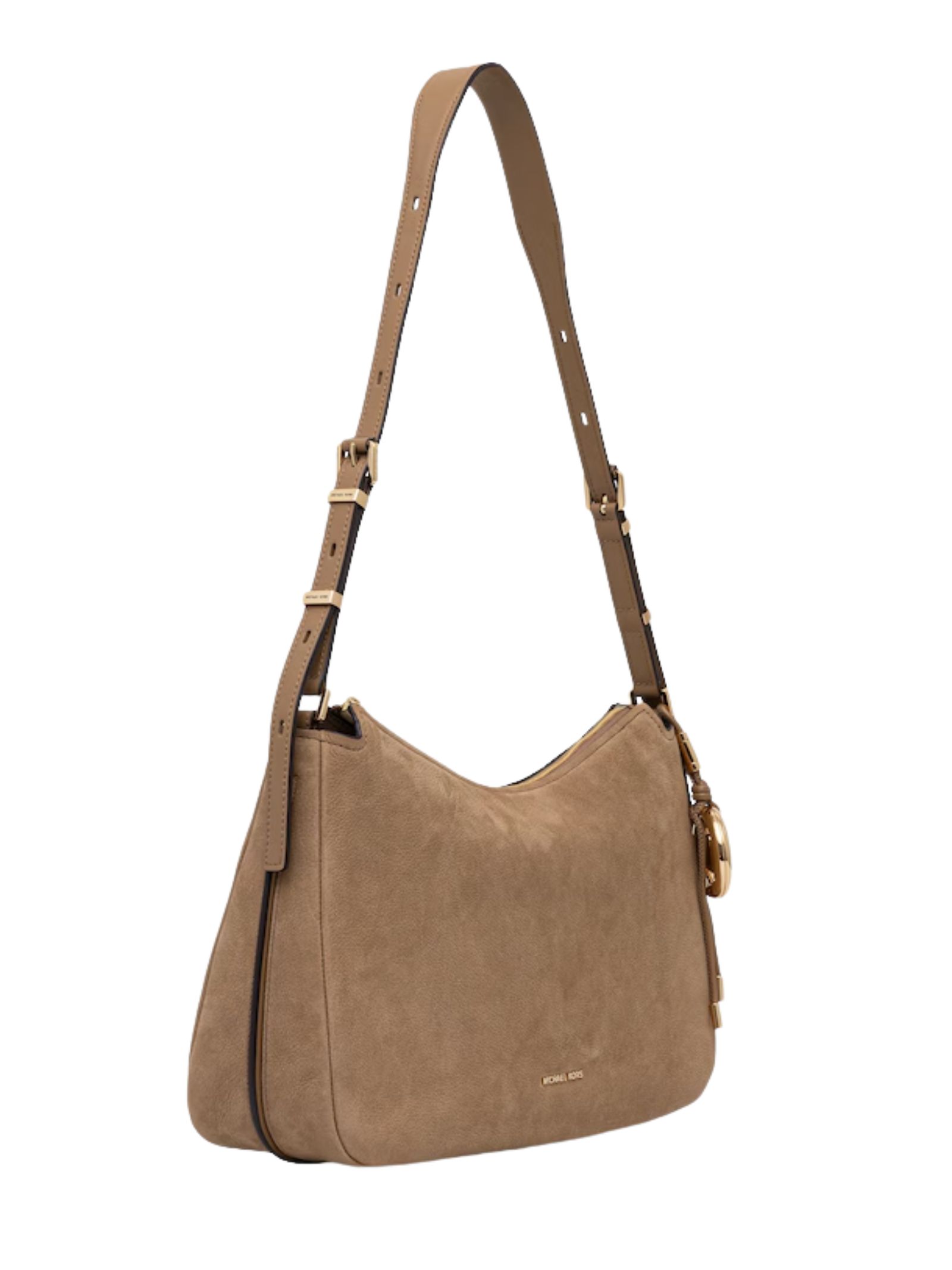 Ampia borsa a mano Michael Michael Kors realizzata in pelle scamosciata sintetica, elegante e funzionale. Dotata di ampio compartimento con cerniera, tracolla regolabile non staccabile (lunghezza 60122 cm) e tasche interne, tra cui una con zip. Foderata e compatibile con formato A4, presenta dimensioni ideali per luso quotidiano: 38 cm larghezza, 21,5 cm altezza, 10 cm profondità.