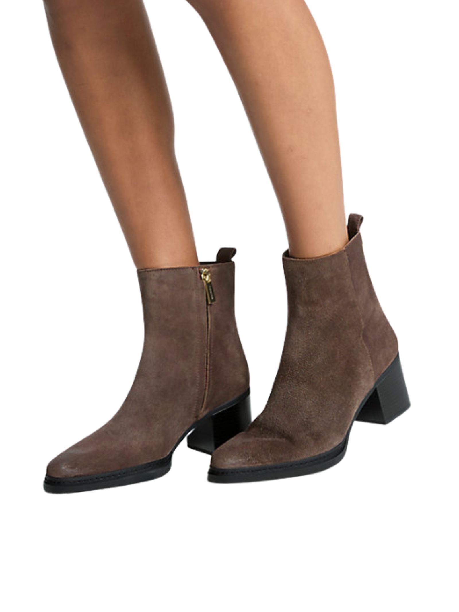 Lo stivale in pelle scamosciata è un modello essenziale e versatile, ideale per luso quotidiano. Caratterizzato da punta smussata e tacco lamellato da 3,8 cm, combina comfort ed eleganza in un profilo sottile che si abbina perfettamente sia ai jeans che agli abiti. Presenta fodera in poliestere, suola in gomma e pratica chiusura con zip.