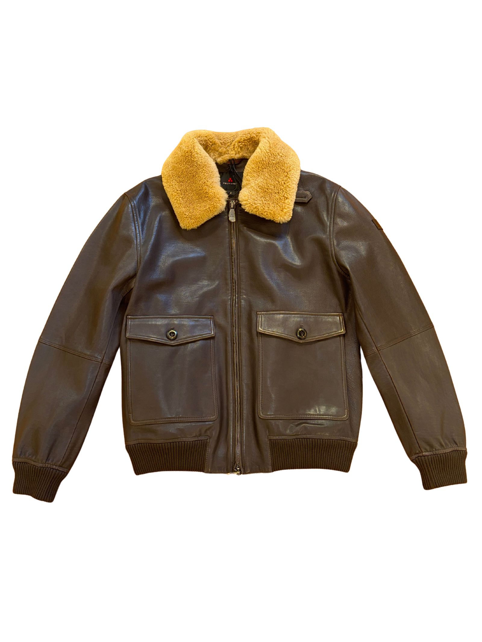 Giacca in vera pelle Peuterey con ampio collo caldo in pelliccia dal design ispirato alle classiche giacche aviatore. Chiusura a zip centrale e due tasche frontali a pattina con bottone a pressione. Polsini e fondo in maglia a coste elasticizzata.