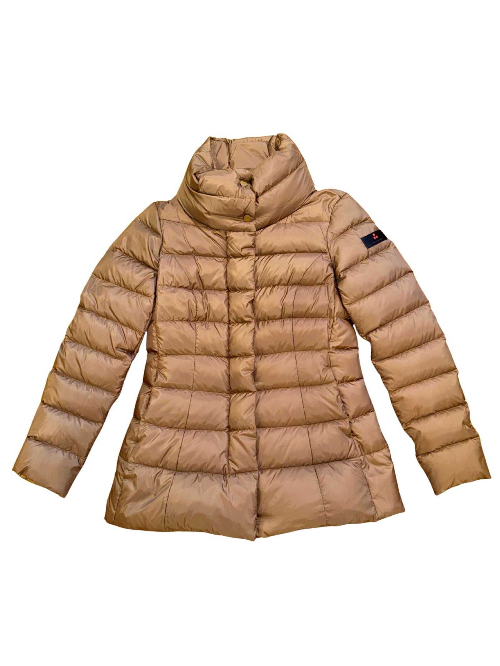 Piumino Peuterey superleggero dalla mano morbida e dalla struttura super compatta, finitura opaca. Limbottitura in piuma naturale garantisce calore e leggerezza. Il design essenziale è arricchito da dettagli funzionali e femminili: collo alto con bottoni a pressione in tono colore, chiusura centrale con zip a doppio cursore nascosta da patta e tasche laterali discrete. La vestibilità slim valorizza la silhouette con naturalezza.