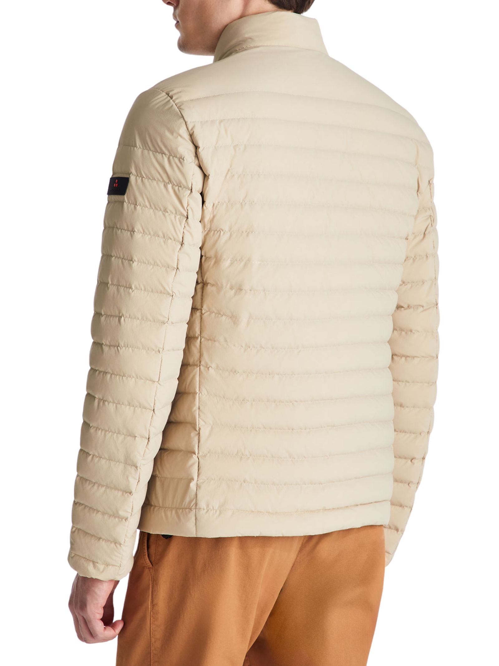 Piumino leggerissimo in nylon 20 denari, dal peso ridotto e finitura semiopaca, leggermente imbottito in piuma naturale. Pensato per la mezza stagione, offre comfort e protezione grazie alle proprietà idrorepellenti con trattamento PFC free. Il design essenziale presenta collo in piedi, chiusura frontale con zip nera a doppio cursore e tasche laterali con tirazip. Un capo pratico e versatile, ideale per il guardaroba contemporaneo.