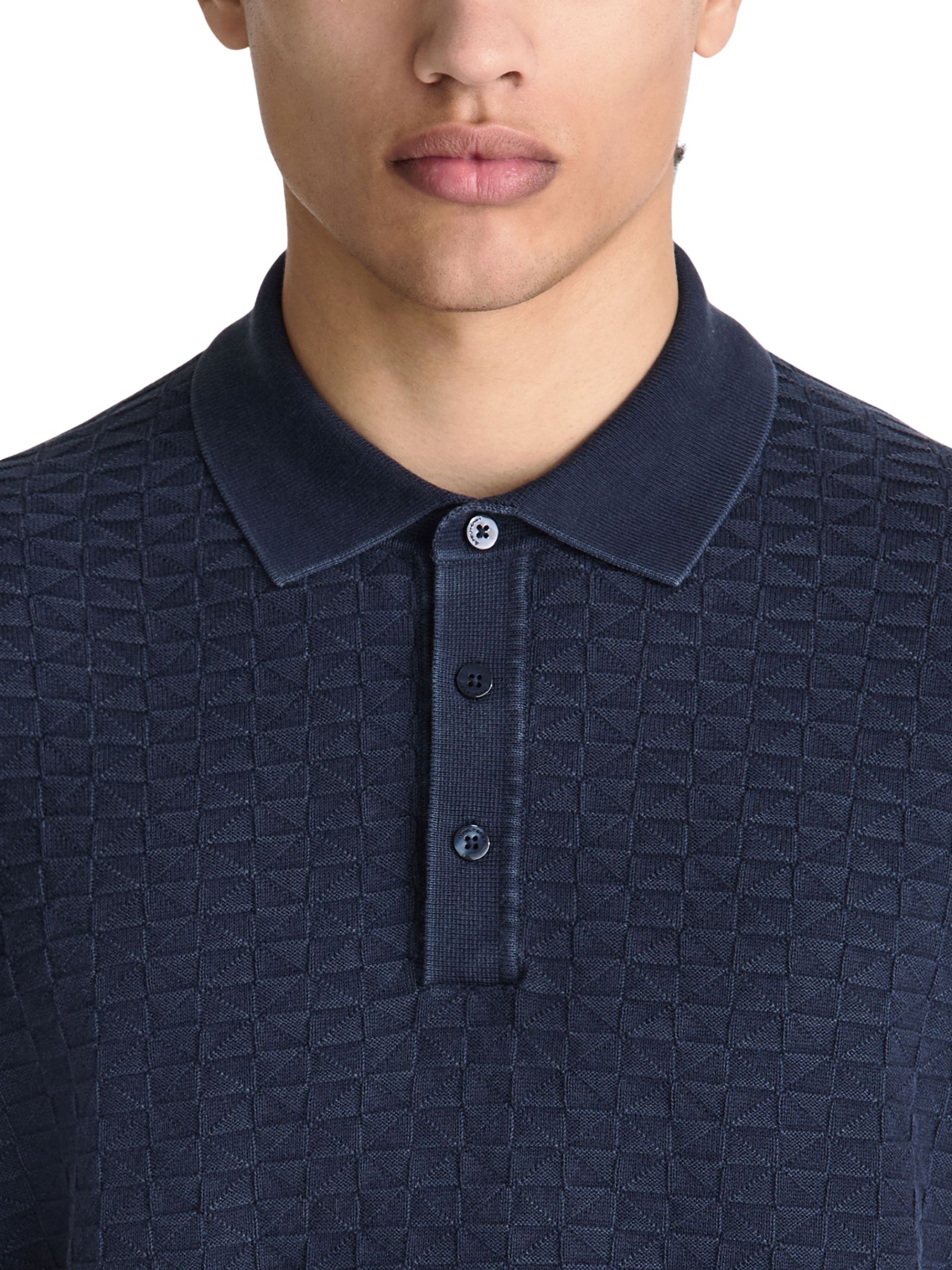 Polo in tricot di cotone tinto capo, caratterizzata da una raffinata lavorazione geometrica e da una vestibilità regolare. Il design classico è rivisitato in chiave contemporanea con colletto a tre bottoni e fondo a costine. Un capo essenziale ma ricercato, che unisce comfort, praticità ed eleganza grazie alla texture del tessuto e ai dettagli distintivi come la personalizzazione con logo. Composizione: 100% cotone.
