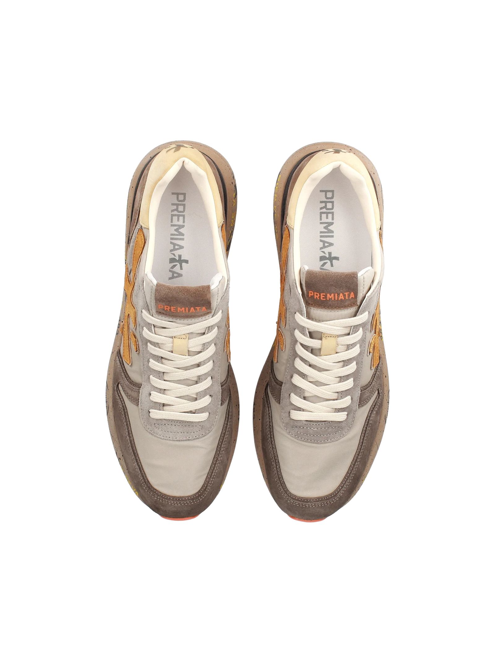Sneakers Mick realizzate in un mix di materiali e pellami di alta qualità, nella tonalità del marrone per uno stile casual. Liconica silhouette è arricchita dal logo Premiata. Composizione: suola 30% gomma, 65% EVA (etilene vinil acetato), 5% TPU (poliuretano termoplastico); tomaia 40% pelle di vitello, 5% PU (poliuretano), 55% PA (poliammide); fodera 86% pelle di capra, 14% pelle di vitello.