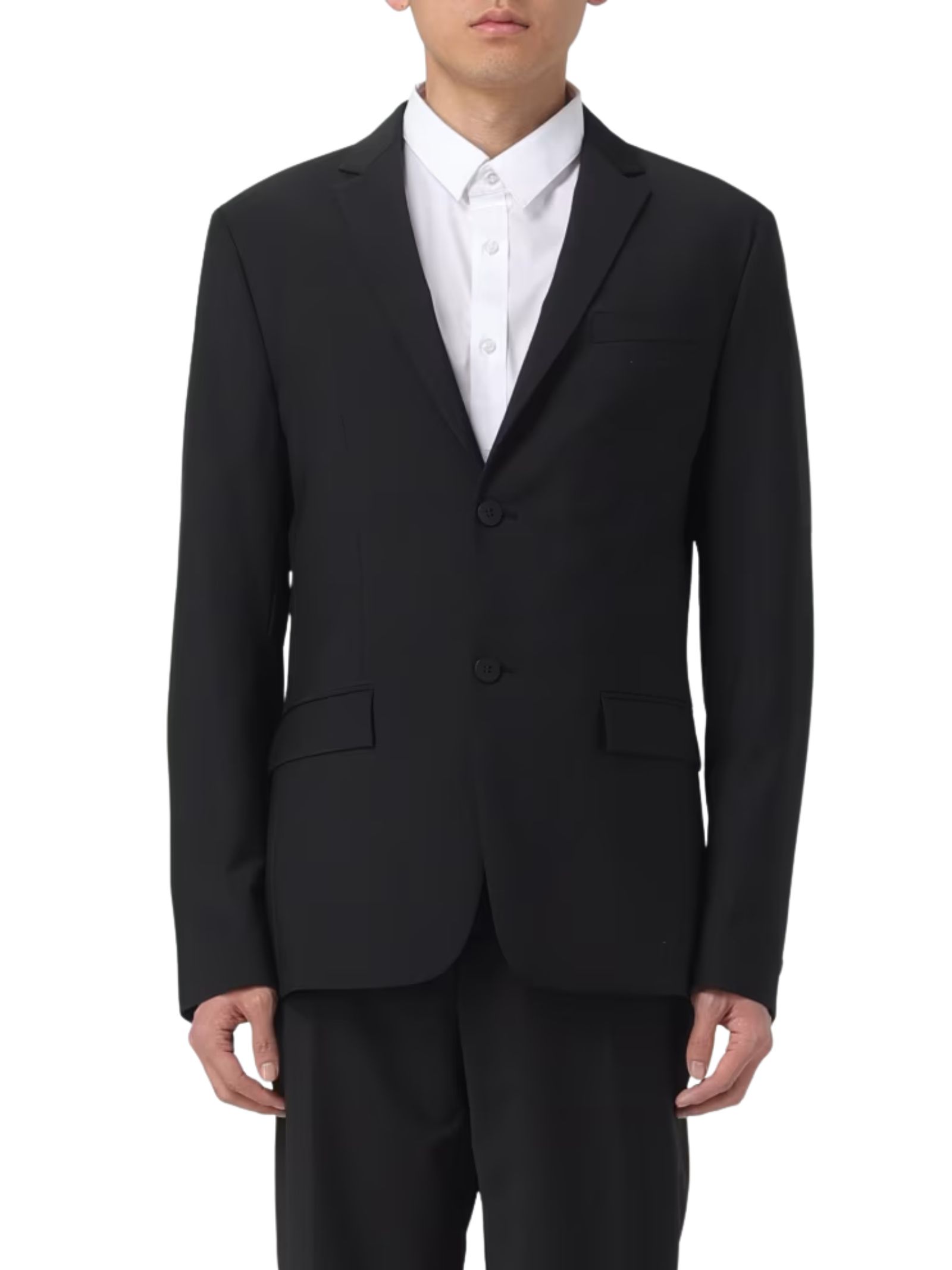 Moderno, raffinato e contemporaneo, abito composto da giacca monopetto e pantalone, con un design che unisce l'eleganza sartoriale allo sportswear di lusso. Vestibilità slim fit. Composizione: 55% lana, 41% poliestere, 4% elastan.