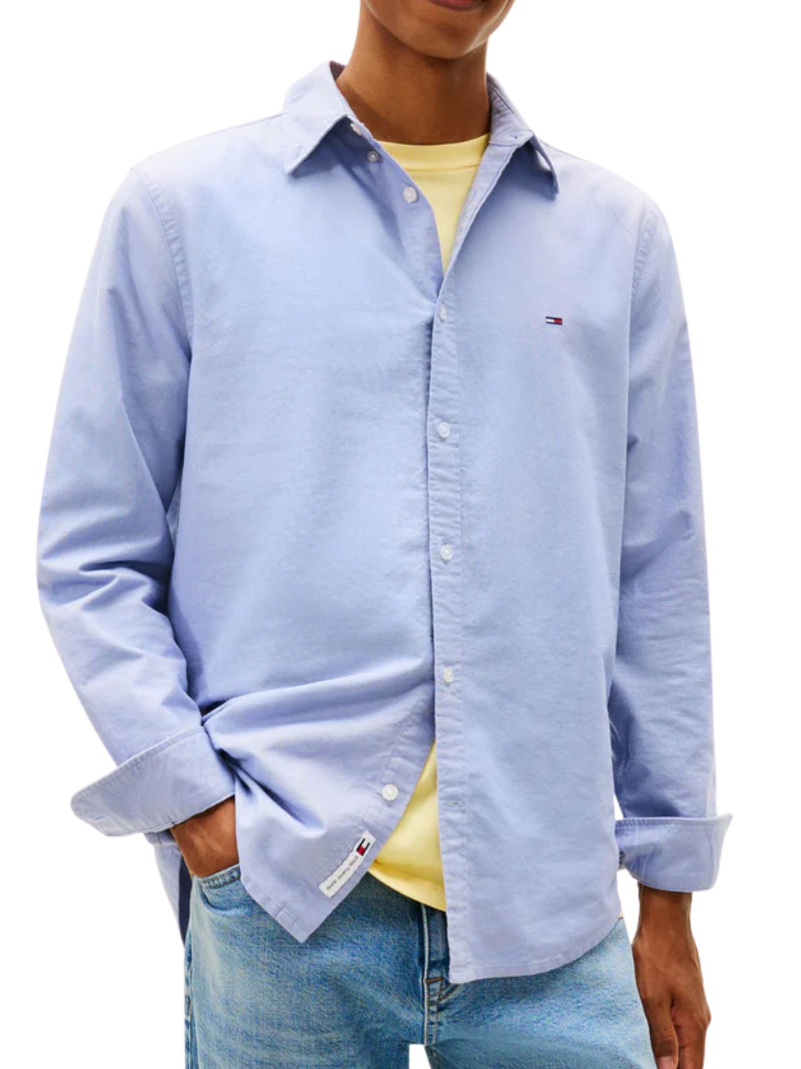 Camicia Tommy Hilfiger in puro cotone Oxford, caratterizzata da colletto abbottonato, polsini arrotondati con un bottone, piega a scatola sul retro, nastro con firma all'interno della scollatura, marchio Tommy Hilfiger e ricamo della bandiera sul petto, con vestibilità regolare pensata per un look classico e confortevole. Composizione: 100% cotone.