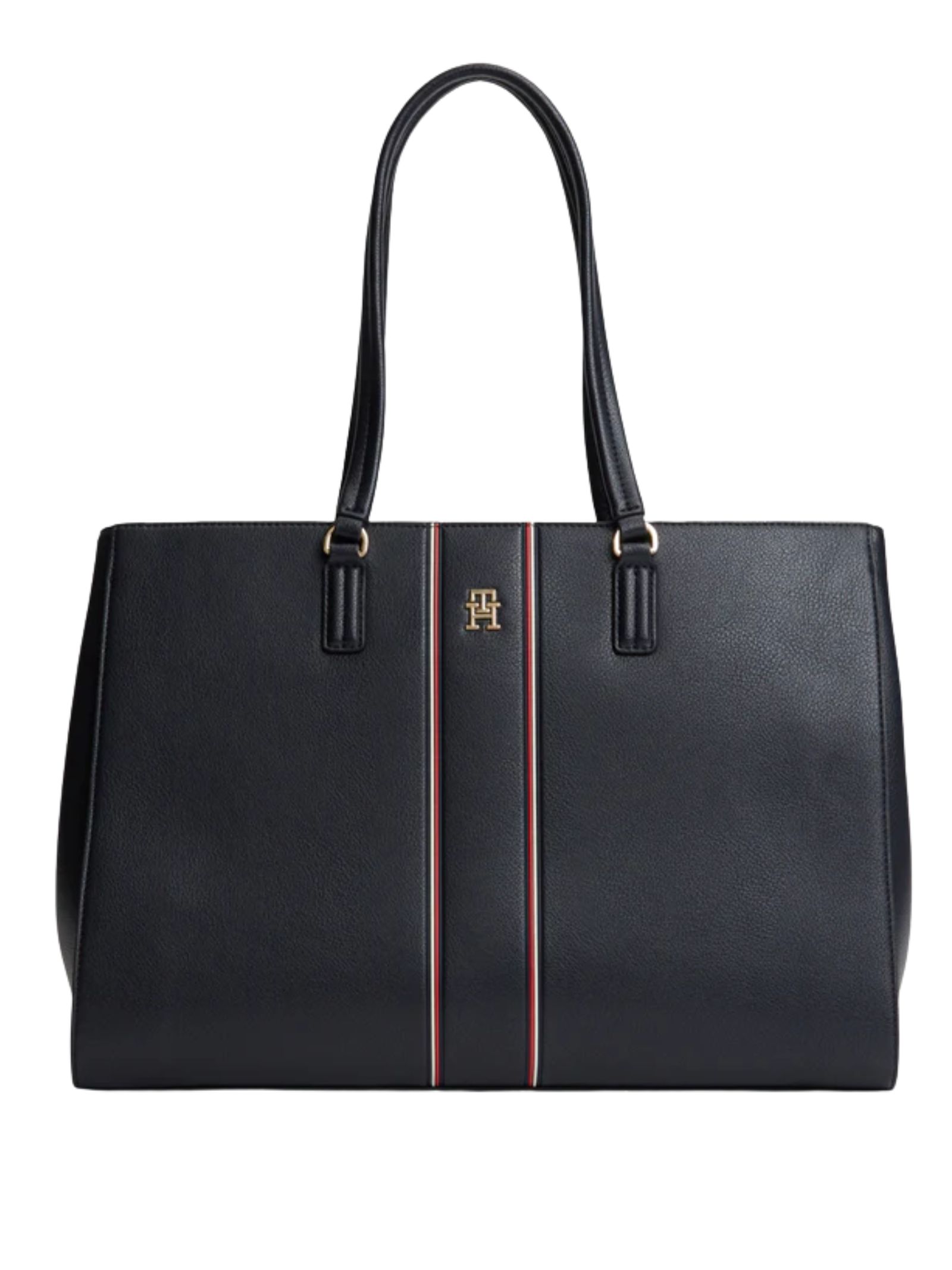 Borsa a manoTommy Hilfiger in poliuretano resistente, con divisorio interno, chiusura zip e magnetica e manici di media lunghezza per un comodo trasporto a tracolla, ideale per unire funzionalità e stile quotidiano.
