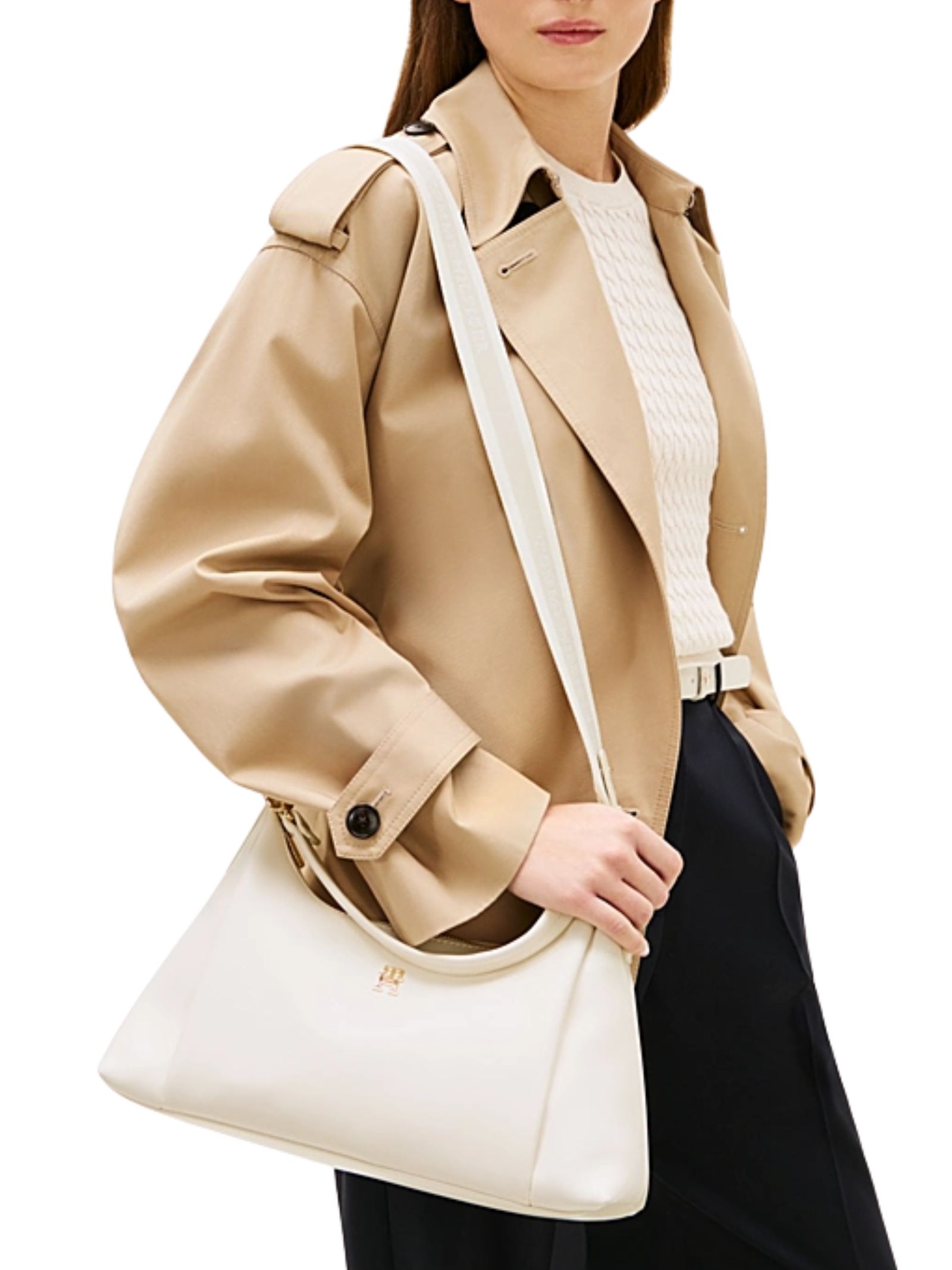Borsa a tracolla Tommy Hilfiger con finitura liscia, chiusura a zip, tracolla regolabile e rimovibile in tessuto con logo, scomparto principale, tasca interna con zip e logo metallizzato sul davanti, dimensioni 35 x 12 x 23 cm; realizzata in 100% poliuretano.
